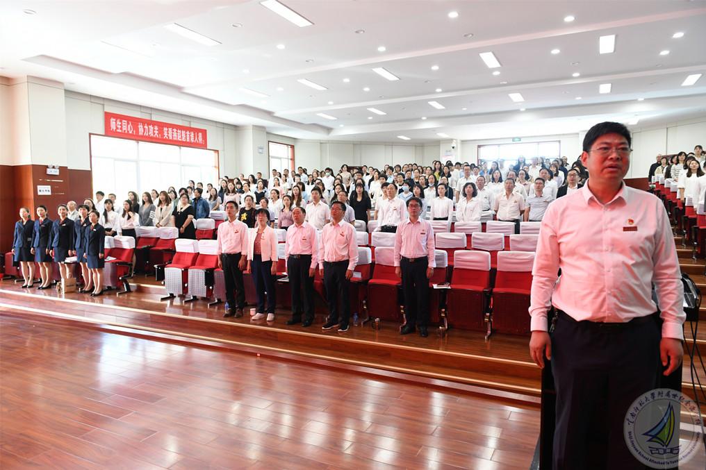 在第37个教师节来临之际,9月11日上午,学校在报告厅召开了学习贯彻习近平总书记在“七一”庆祝建党100周年大会上的重要讲话精神专题宣讲和师德师风专题教育大会。大会由崔汝坤副校长主持,全体教职工参加了大会。
