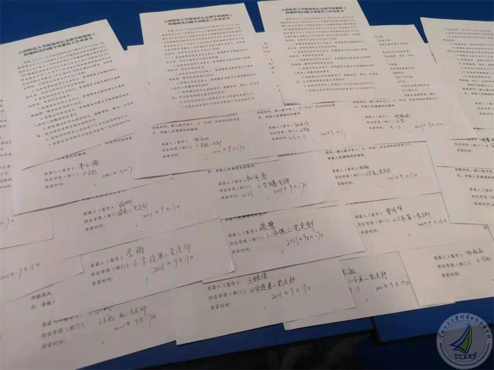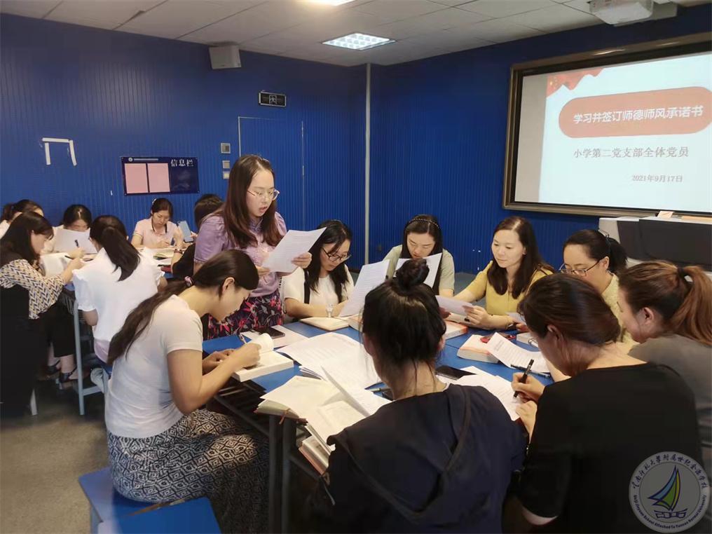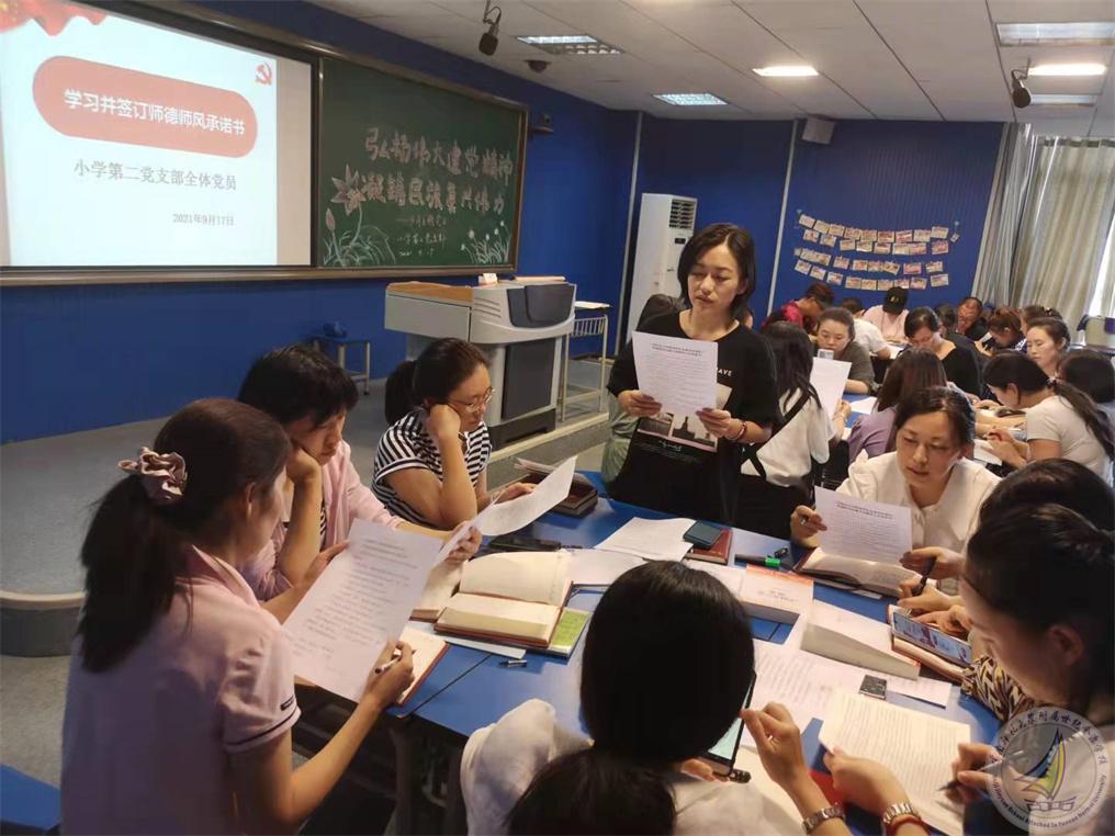 在支部书记杨绘春同志的带领下,全体党员老师认真学习并签订师德师风承诺书。其中,胡婵、曾娟娟、李林玲三位老师领读了师德师风承诺书。