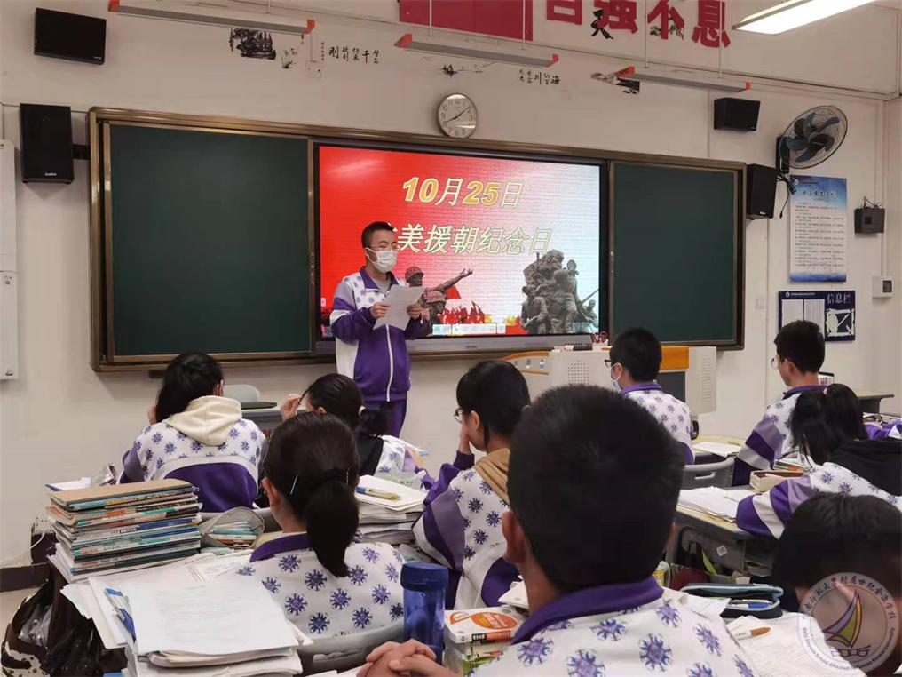 富裕、无忧的生活,让现代中学生的我们迷失了自己,不知道到底学习是为了什么?我们的英雄用实际行动为我们回答了这个问题——为了国家,国家面临危险时,我们有能力尽自己的一份力。今年正是抗美援朝71周年,作为青年学生,我们应了解抗美援朝历史,学习人民志愿军英雄事迹和抗美援朝精神,传承抗美援朝红色基因,增强爱国情怀,争做新时代好学生。祖国的未来,我们应该肩负起我们的责任。新时代需要青年坚定理想信念、牢记初心使命,从历史中汲取勇气和力量,勇挑奋进前行的重担。