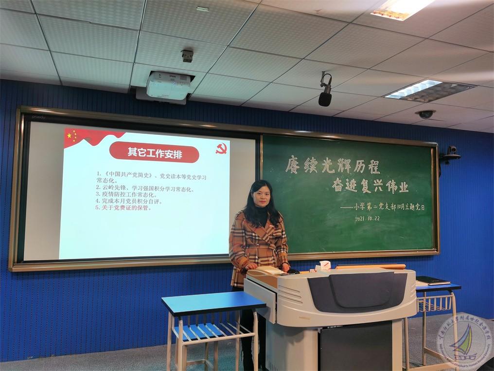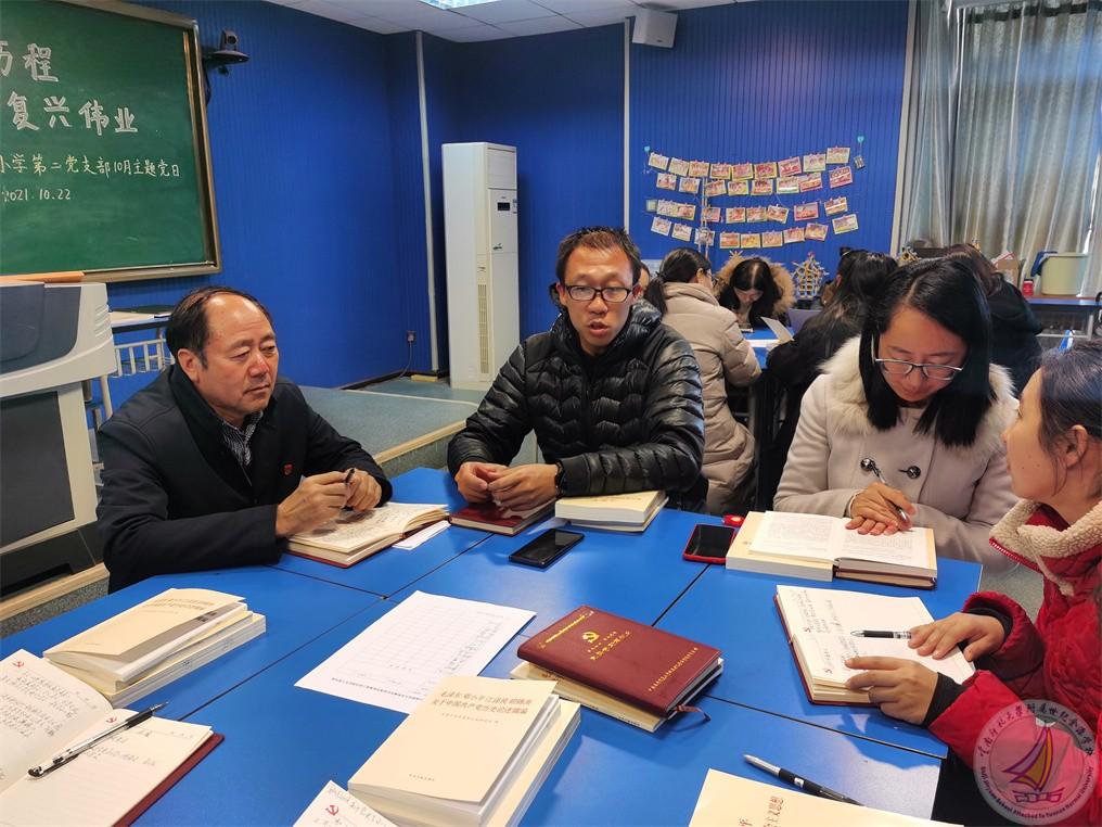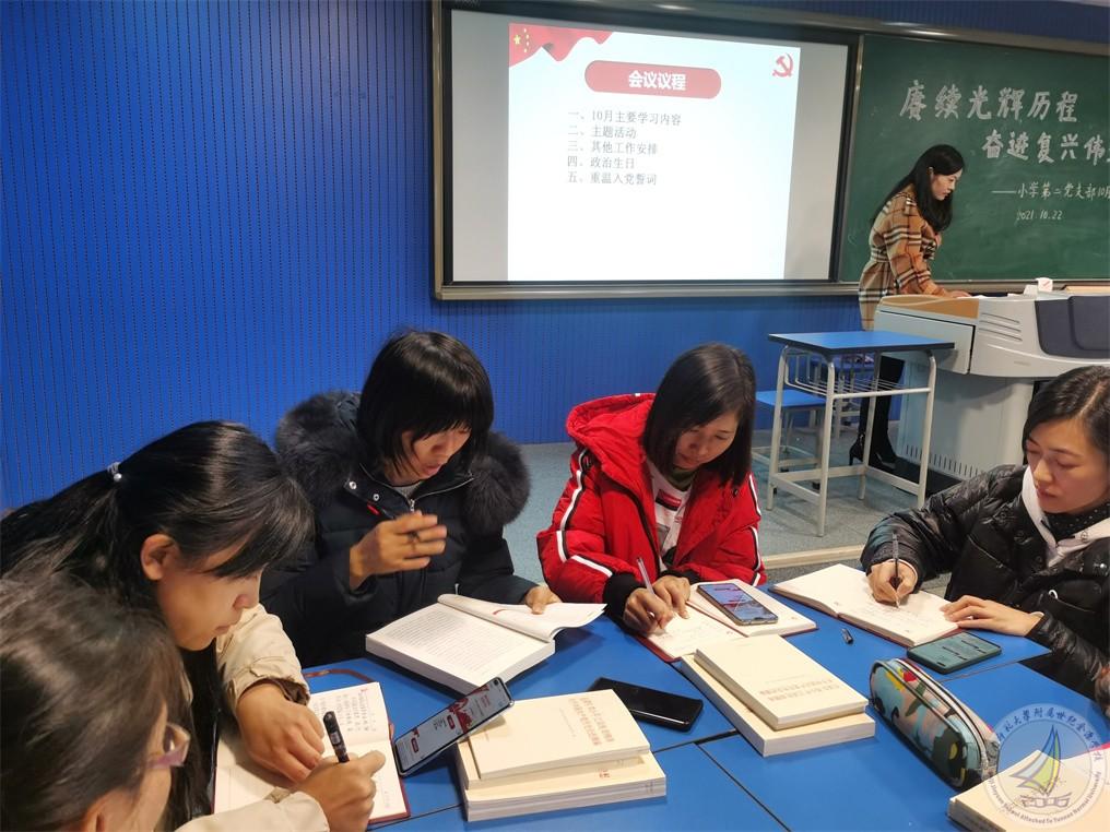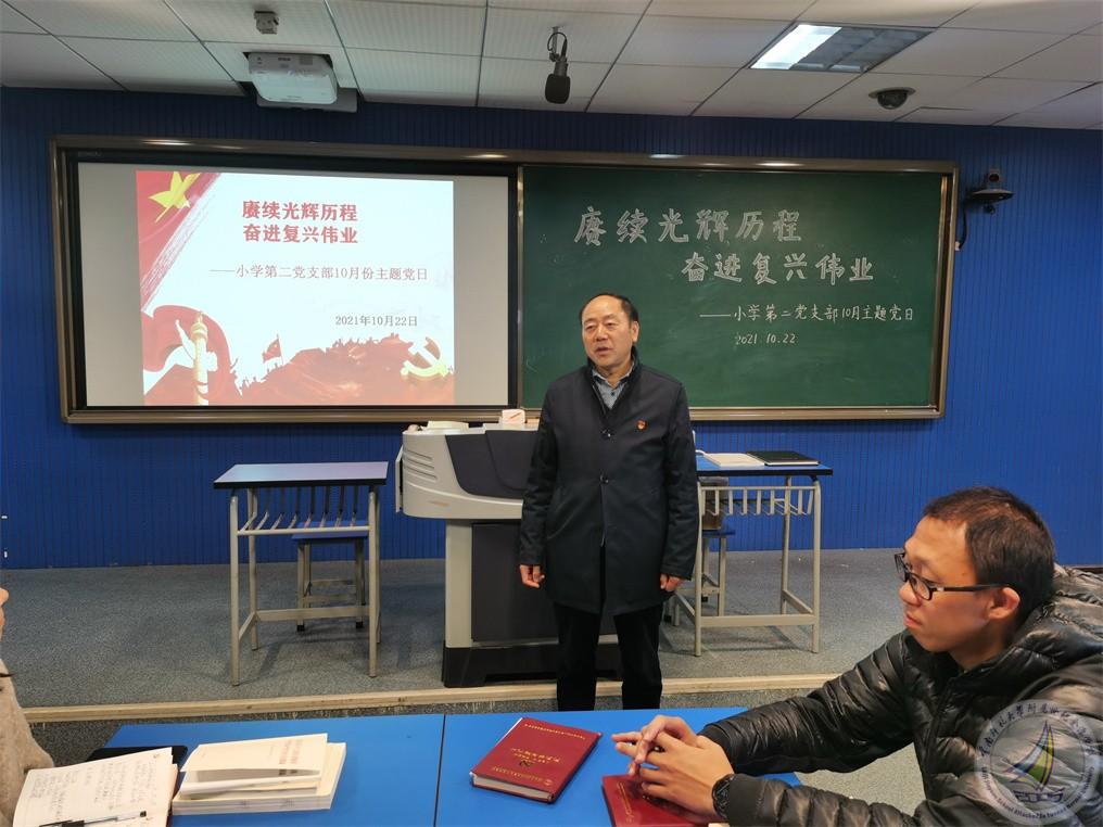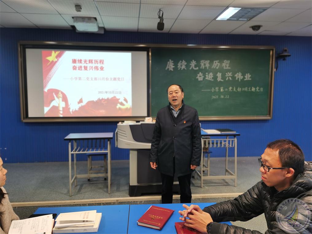 根据学校安排,以“赓续光辉历程、奋进复兴伟业”为主题,小学段第二党支部于10月22日中午12:30开展了10月主题党日活动,会议由支部书记杨绘春同志主持,许全友副书记参与了会议。根据上级党委要求,全体党员认真学习了相关内容。其中主要学习了以下内容: