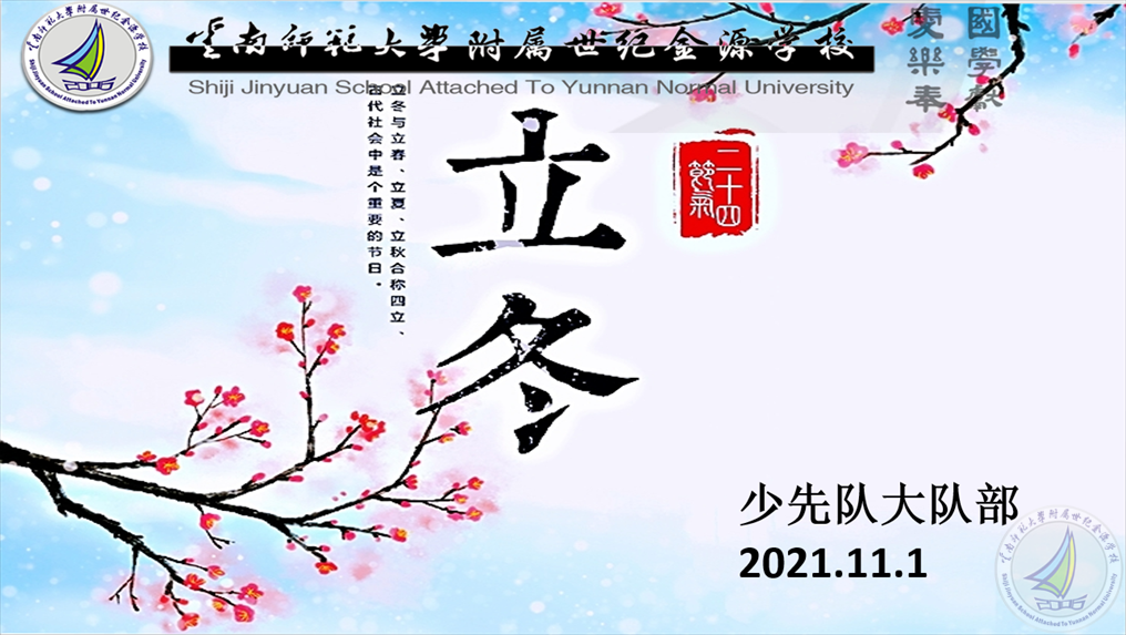 立冬是二十四节气中的第十九个节气,也是冬季六节气之首,公历每年的11月7日或8日,太阳运行到黄经225度时为立冬节气。 立冬,意味着生气开始闭蓄,万物进入休养、收藏状态。其气候也由秋季少雨干燥向阴雨寒冻的冬季气候转变。 中国古人将立冬分为三候:水始冰、地始冻、雉入大水为蜃。为了庆祝立冬的到来,2021年11月1日,少先队大队部组织小学段师生开展庆立冬日主题晨会活动。