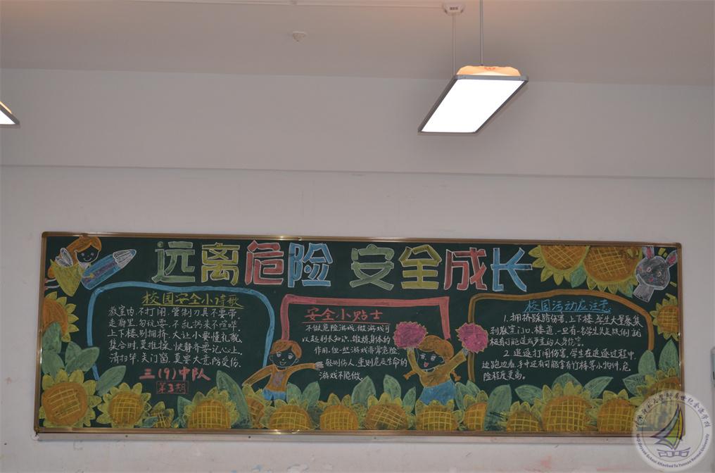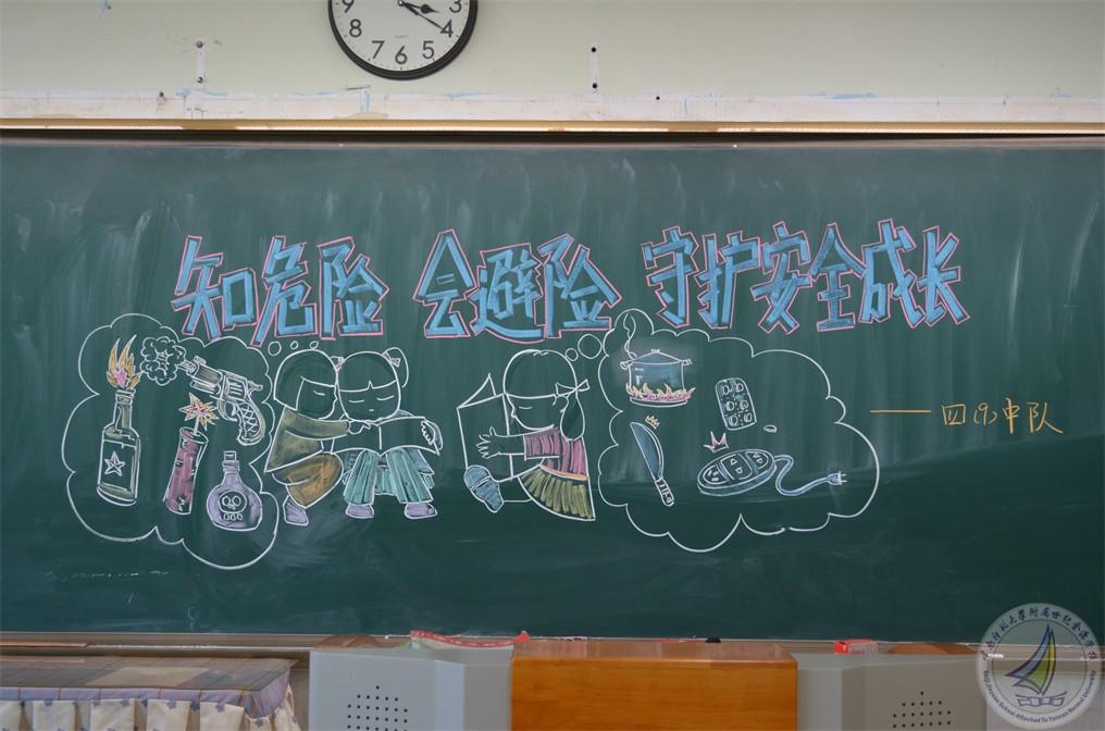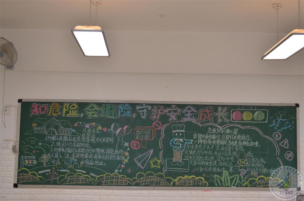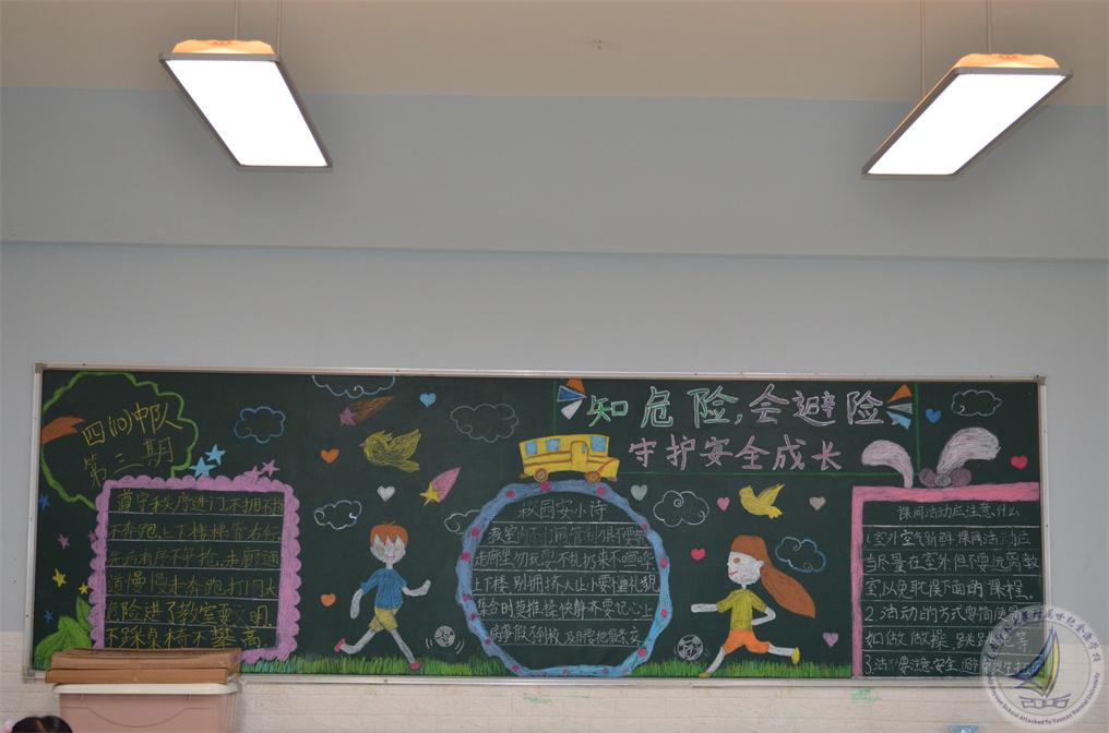 在“知危险 会避险 守护安全成长”主题黑板报活动中,各班更是将安全教育用彩色的粉笔绘画到黑板上,让同学们在欣赏五彩缤纷的黑板报时,能够更好的牢记安全知识,更好的保护自己。