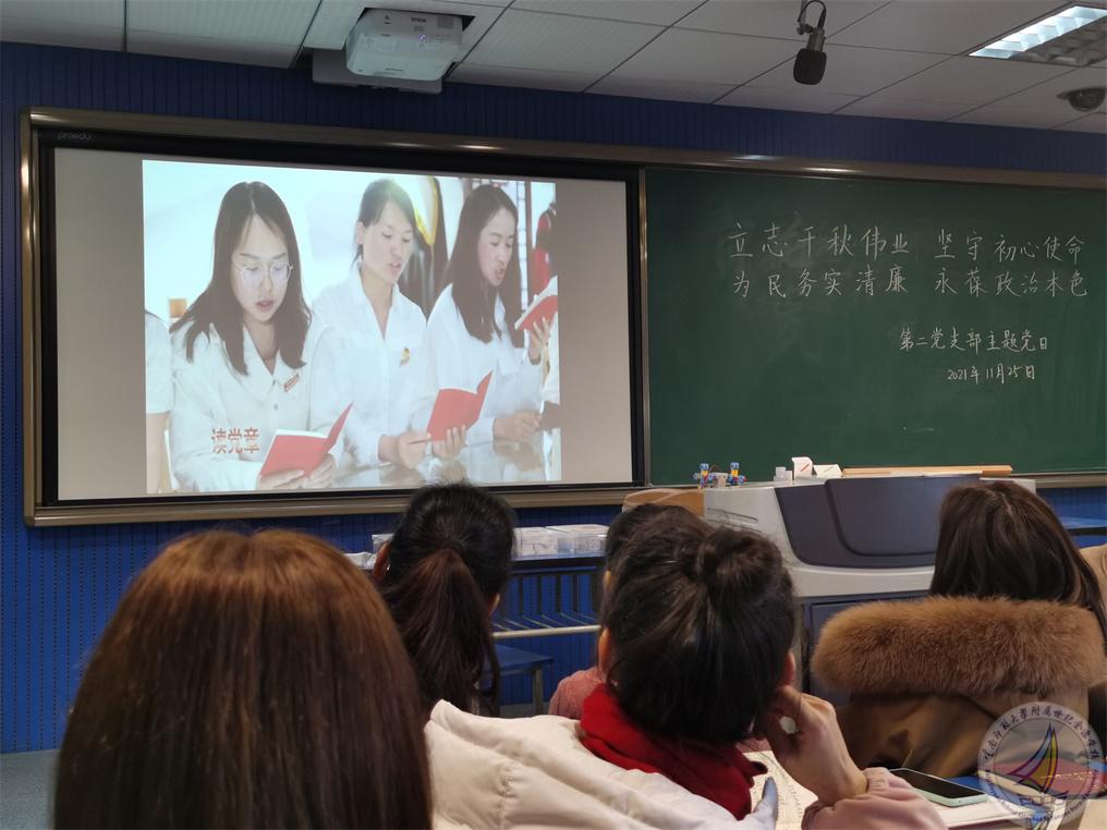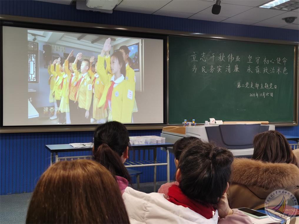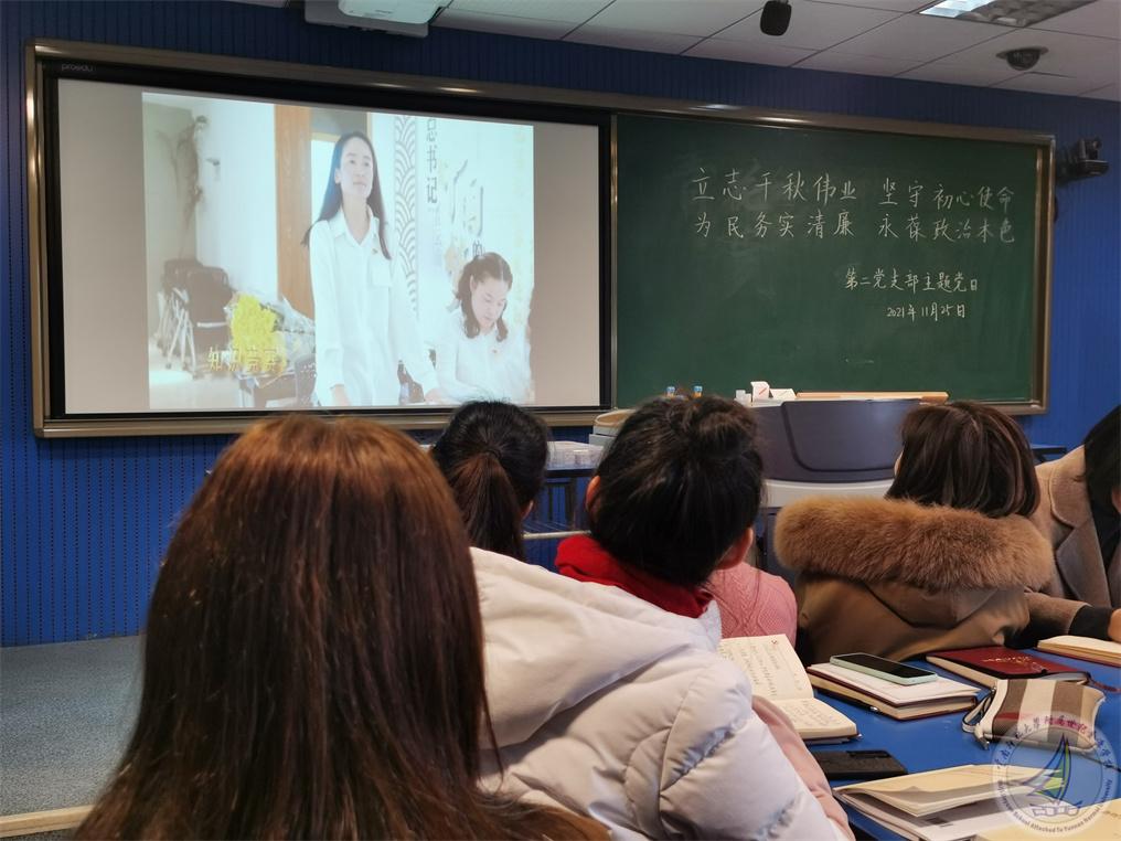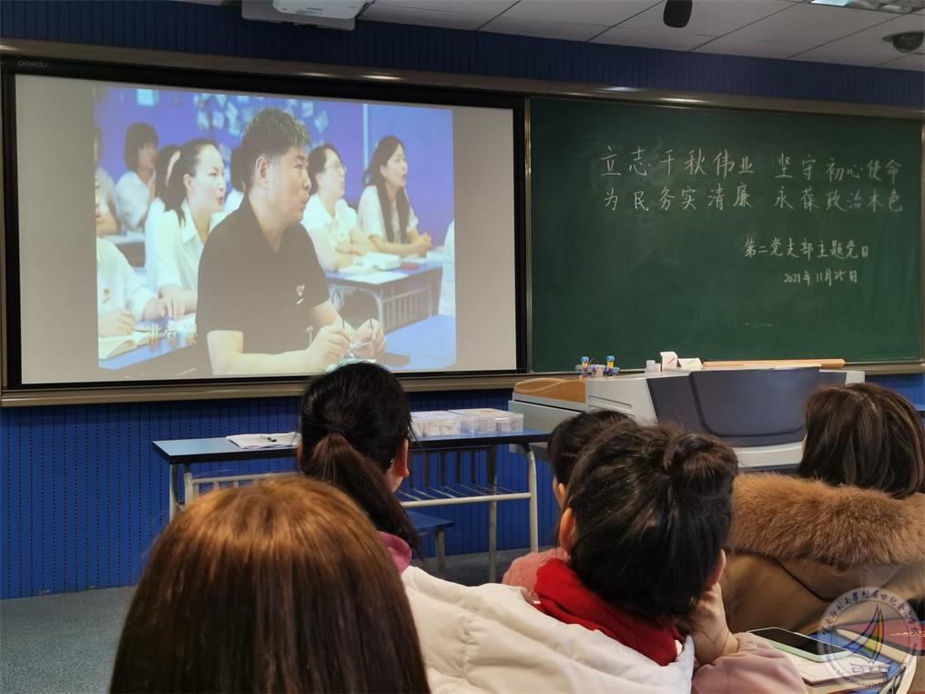 接下来,书记杨绘春同志播放了建党100周年时候我支部共同拍摄的“学党史 筑信仰 担使命 庆百年”的微视频,共同回顾我支部全体党员一路走来的学习足迹。
