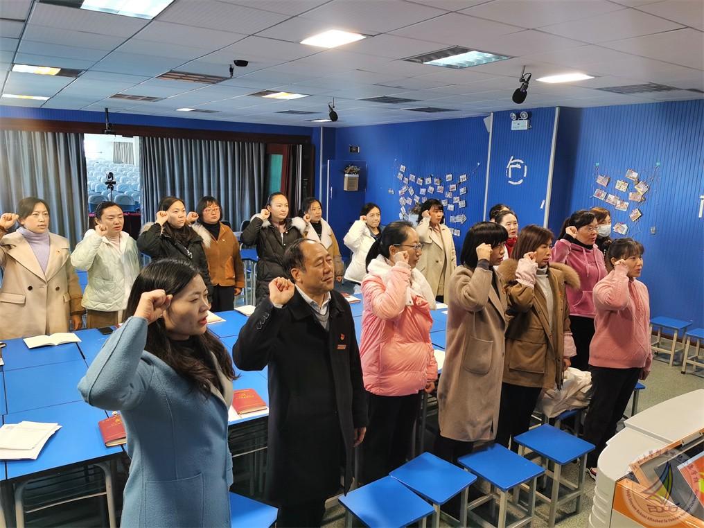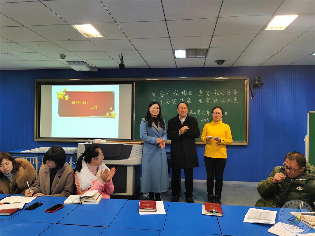 之后,许全友副书记为本月过政治生日的王玲同志发了生日礼物——两本学习读本。最后书记杨绘春带领全体党员重温入党誓词。