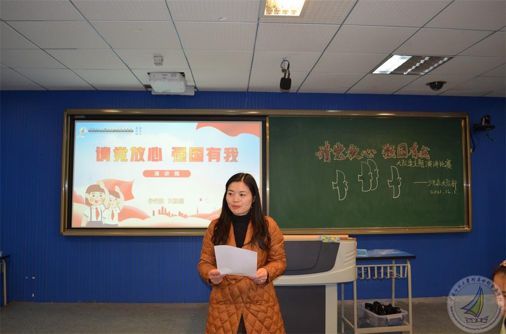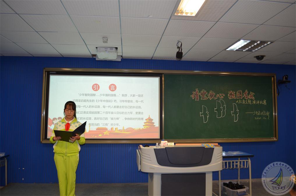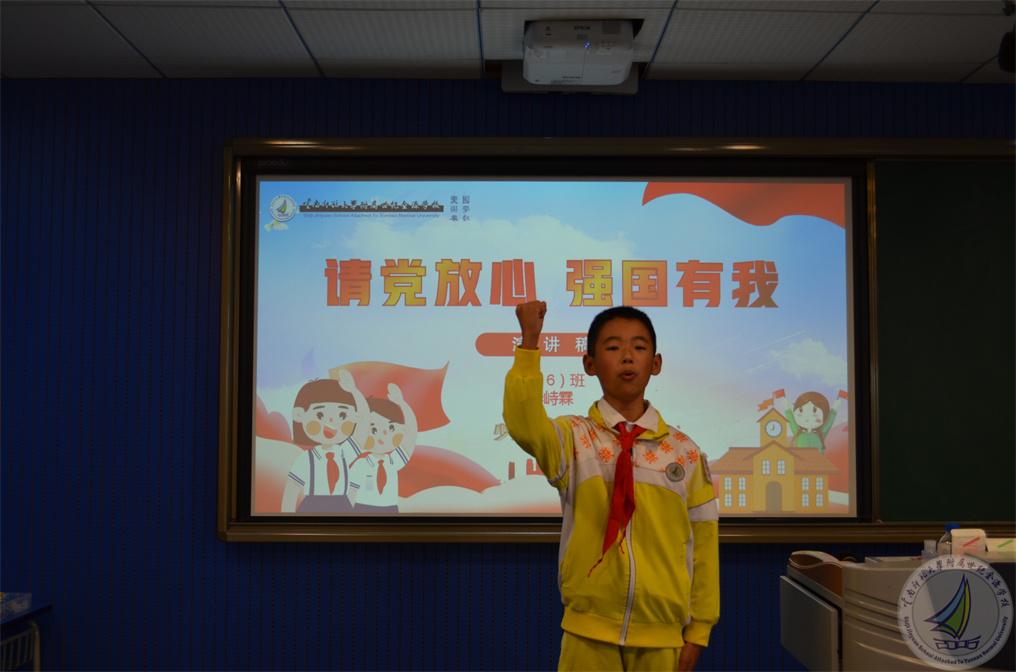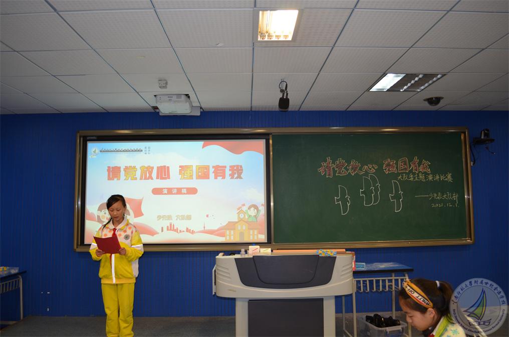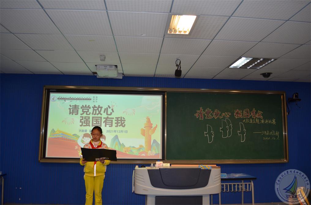 12月1日中午,少先队大队部组织大队委开展“请党放心 强国有我”主题演讲比赛。本次比赛共有22名大队委报名参加,他们的演讲铿锵有力,他们的誓言铁骨铮铮。少年强则国强,中国的未来属于少年,强国的希望寄予少年。在此次演讲比赛中他们将新时代中国实现中华民族伟大复兴为己任,增强自身的志气、骨气、底气,不负时代,不负韶华,不负党和人民的殷切期望!