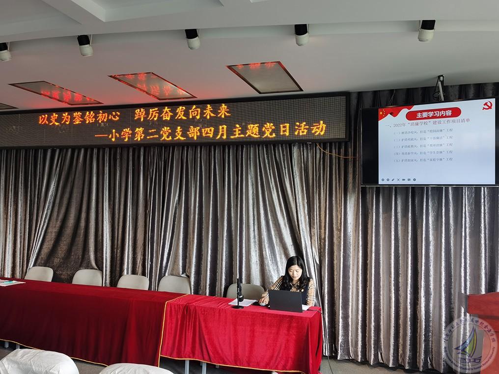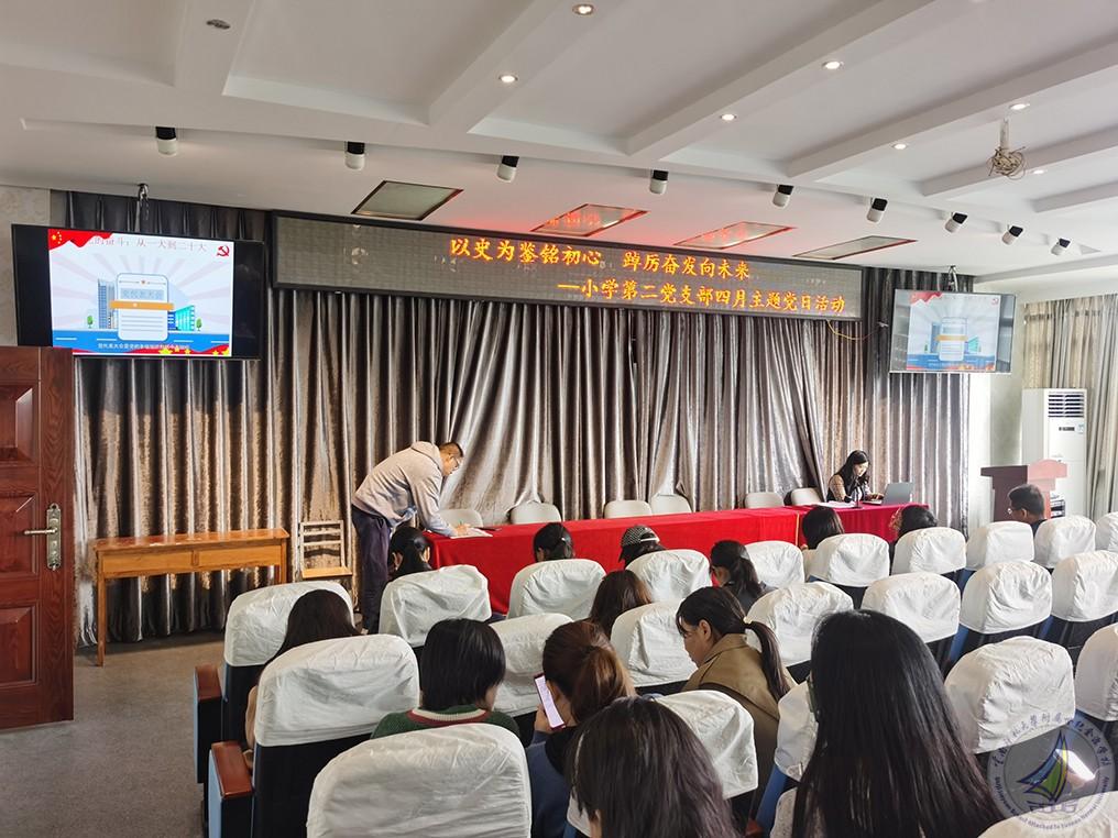 为引导党员进一步坚定理想信念,发挥带头示范作用。4月22日上午9:00,小学段第二党支部全体党员在四楼会议室召开“以史为鉴铭初心 踔厉奋发向未来”为主题的4月份主题党日活动。会议由支部书记杨绘春同志主持。根据上级党委要求,全体党员认真学习了相关内容。