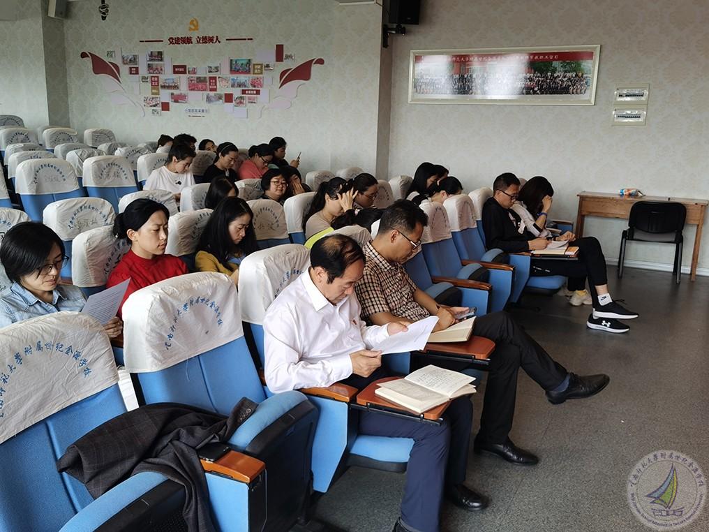 6月23日中午,小学第二党支部全体党员在四楼会议室召开6月主题党日活动,主题为“改进作风提效能,奋勇前进新征程”,许全友副书记列席会议。
