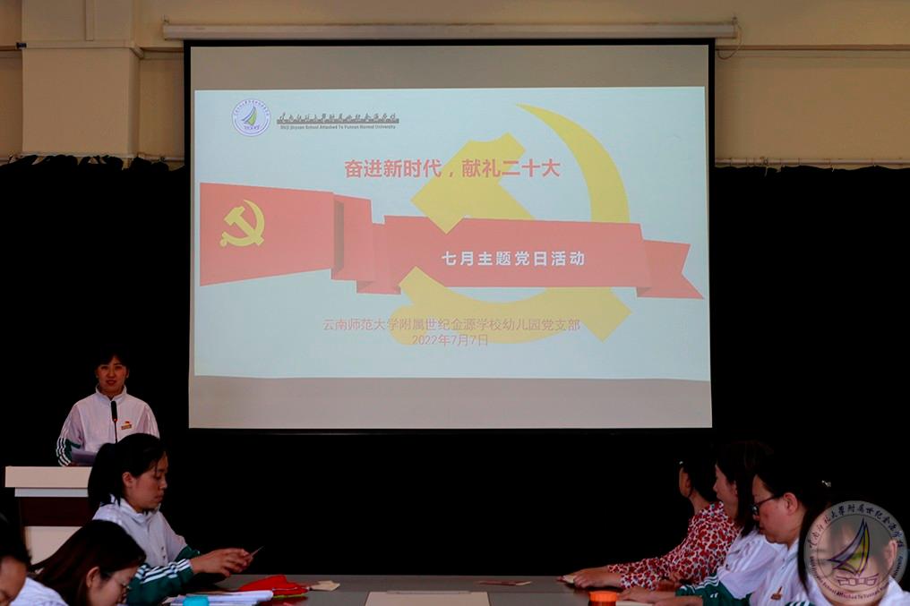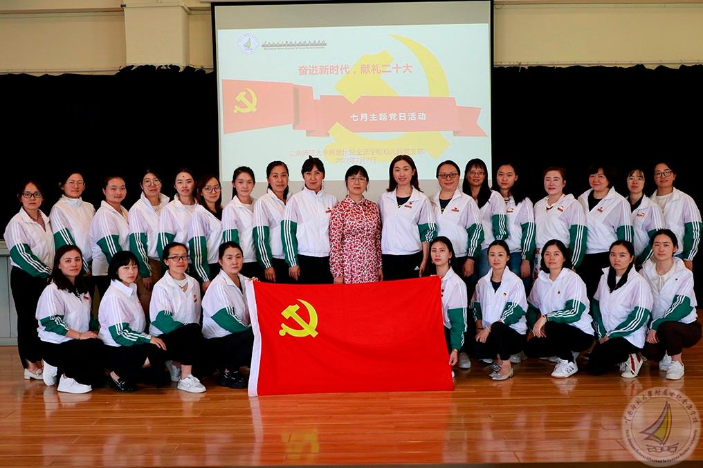 在庆祝中国共产党成立 101 周年之际,为巩固拓展党史学习教育成果,把党史学习教育成效转化为干事创业的动力、举措和成效,大力弘扬伟大建党精神,在新的赶考之路上续写新的发展奇迹、创造新的历史伟业,以实际行动迎接党的二十大胜利召开。在学校党委的统一部署下,2022年7月7日,幼儿园党支部开展了以“奋进新时代,献礼二十大”为主题的七月主题党日活动。学校副校长渠志春同志深入支部参与活动。活动由幼儿园党支部书记崔燕同志主持,全体党员参与本次活动。