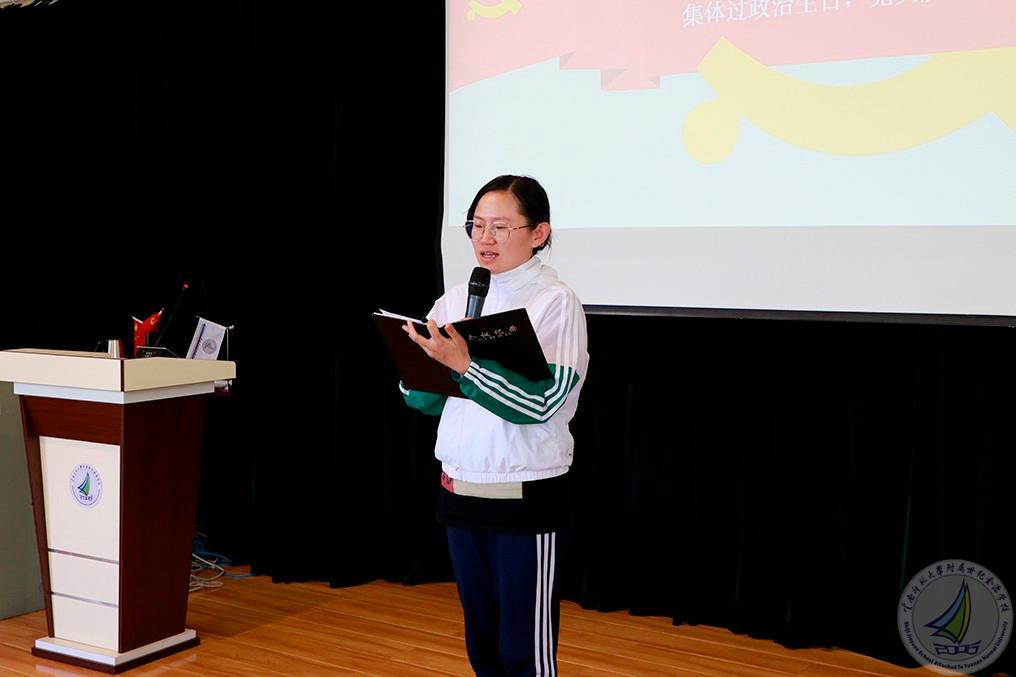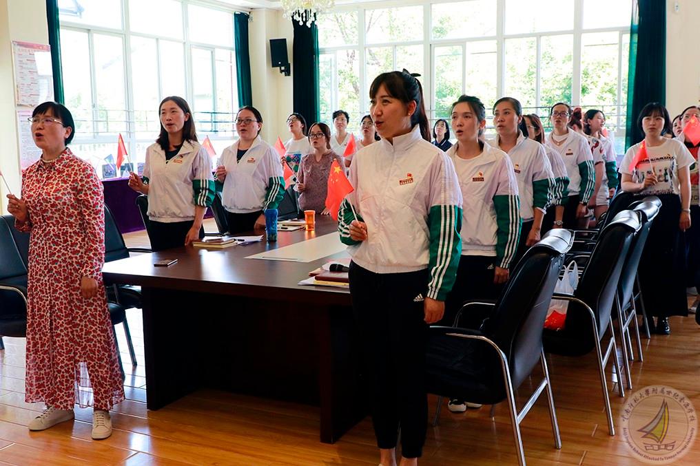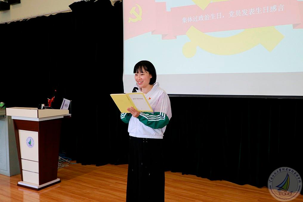 第三项议程,副校长渠志春同志带领全体党员重温入党誓词,擦亮共产党员初心,牢记作为一名共产党员的使命担当。接着,支部集体为七月政治生日的党员田潞湲、朱志敏、丁国巧、崔燕、李芳、王云丽、杨洁、张雪、王启娟、张丽同志过政治生日。渠副校长为大家颁发政治生日贺卡和纪念书籍,政治生日党员一一发表生日感言。