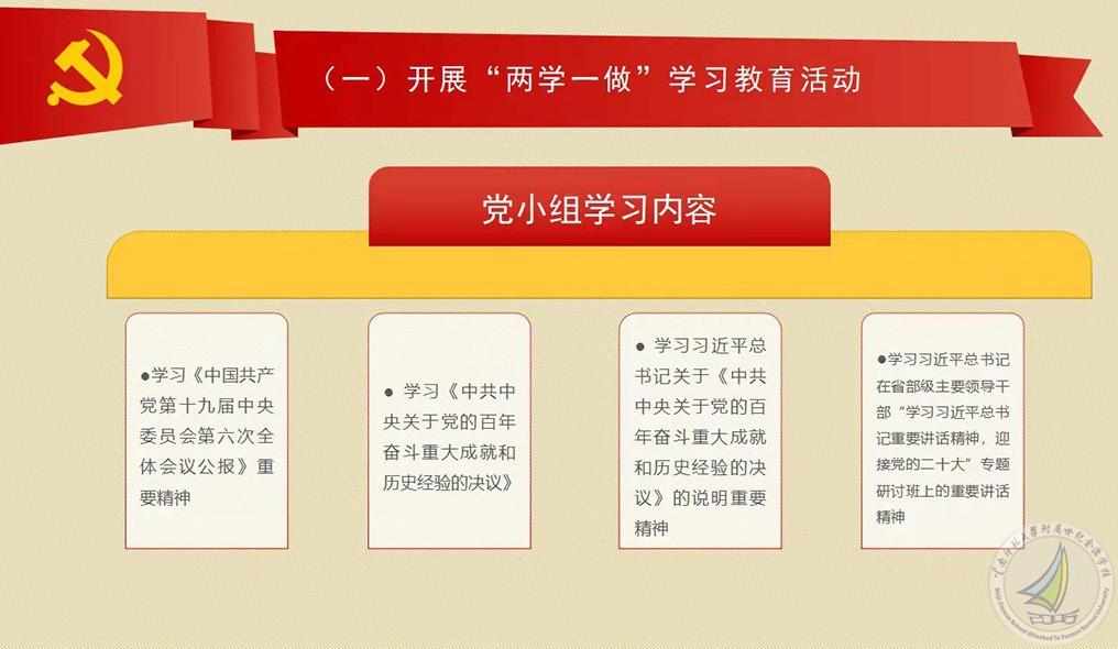 活动共分三项议程。首先,开展“两学一做”学习教育,全体党员认真自学《中国共产党第十九届中央委员会第六次全体会议公报》重要精神、《中共中央关于党的百年奋斗重大成就和历史经验的决议》等学习材料。百年矢志践行初心使命,百年筚路蓝缕奠基立业,百年创造辉煌开辟未来。我们从党的百年奋斗中看清楚过去我们为什么能够成功、弄明白未来我们怎样才能继续成功,我们将继续努力,把党的成功经验传承好、发扬好。以咬定青山不放松的执着奋力实现既定目标。