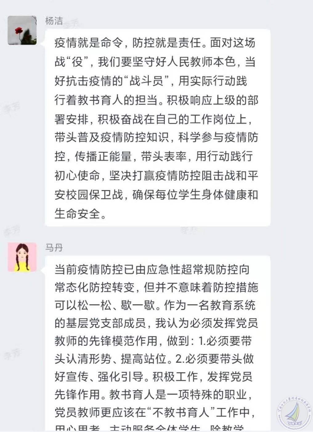 第四项议程,副校长渠志春同志作活动小结:生命重于泰山、疫情就是命令、防控就是责任,作为一名共产党员,我们一定要充分发挥先锋模范作用。不忘初心、牢记使命,挺身而出、英勇奋斗!