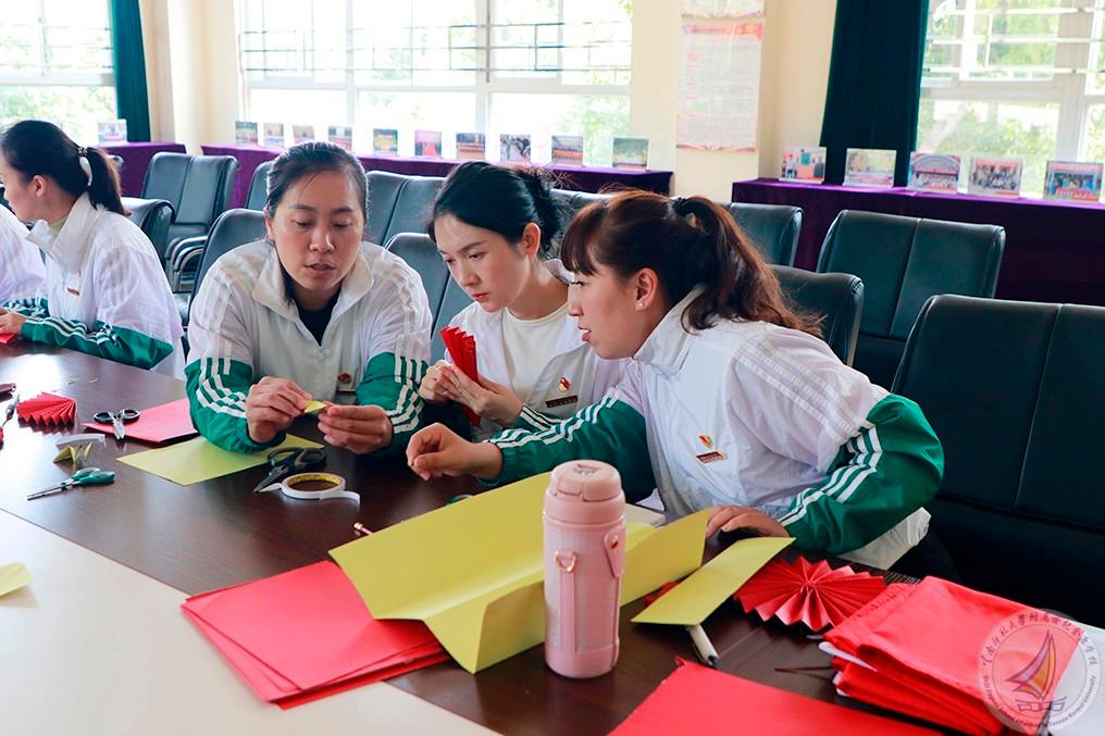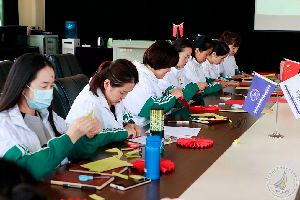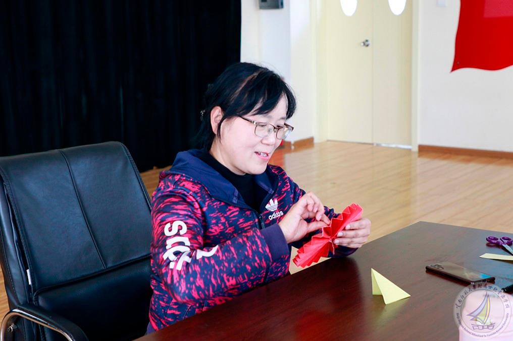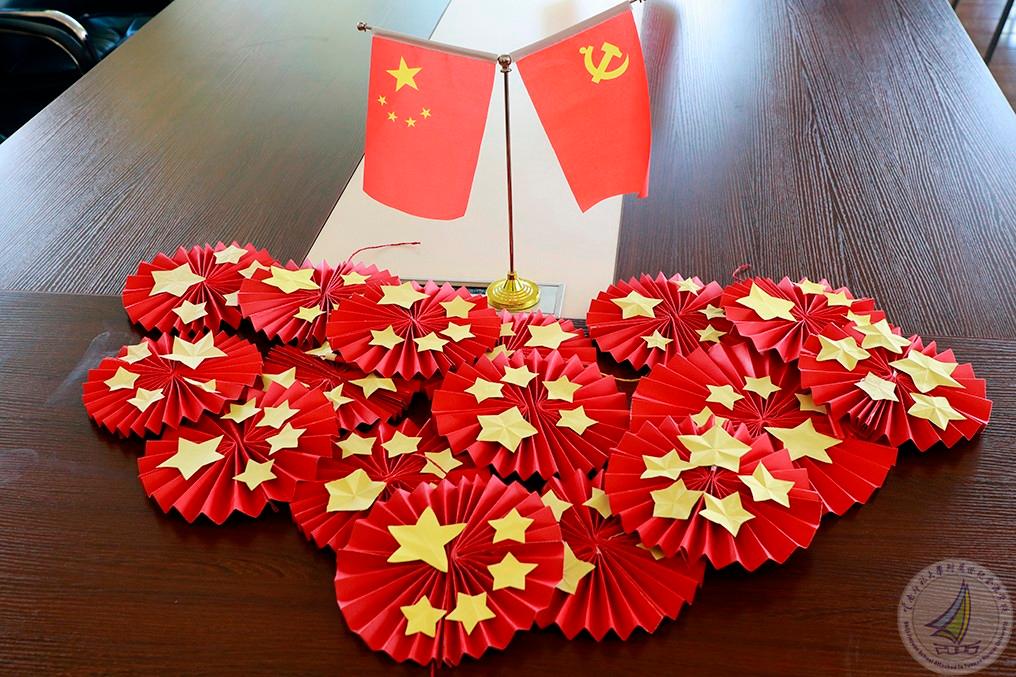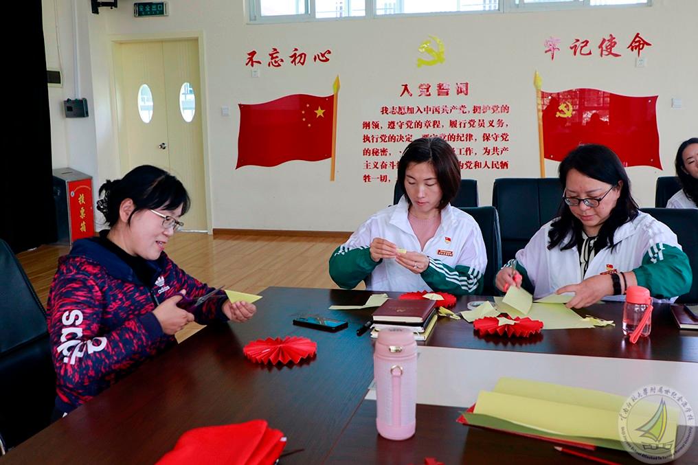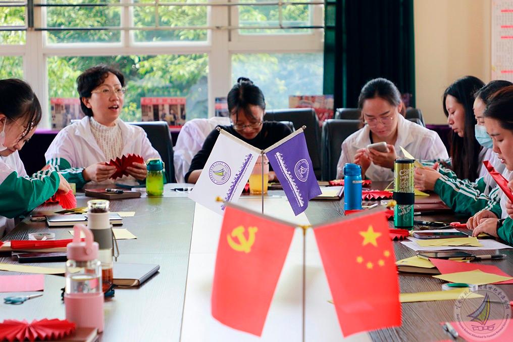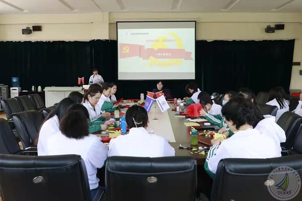 第四项议程,集体制作红色手工。党员同志们通过剪、折、粘等方式,充分发挥幼儿园教师的专业特长,亲手制作手工,以巧手传情、作品言志,庆祝二十大的胜利召开。
