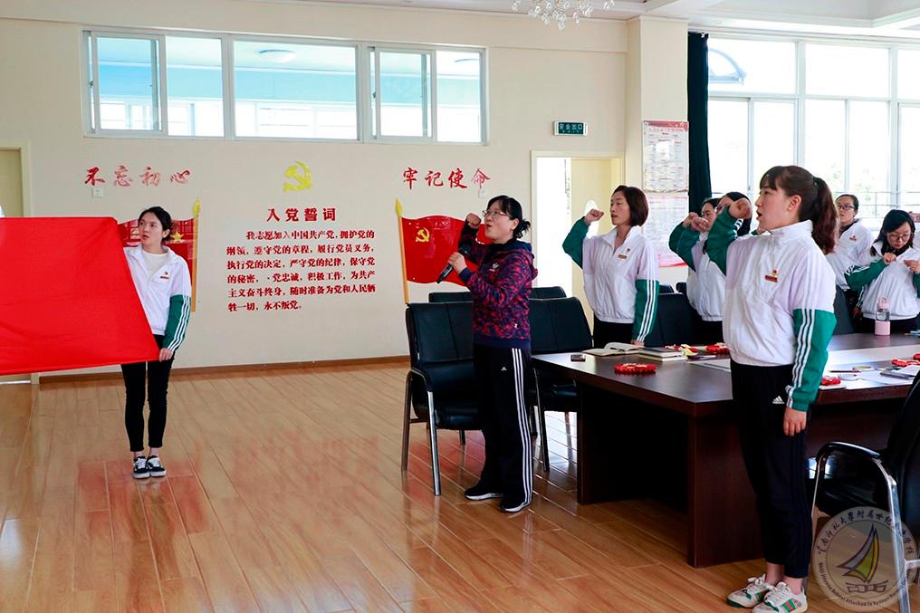 第三项议程,副校长渠志春同志带领全体党员重温入党誓词。在铿锵的誓言中,大家的心灵再次受到洗礼,理想信念更加坚定。作为新时代的党员教师,我们都要以时不我待的紧迫感和责任感,积极投入到教育教学工作中,为教育的高质量发展贡献力量!
