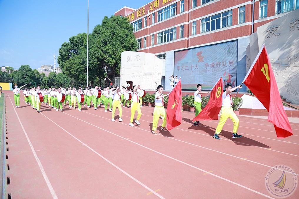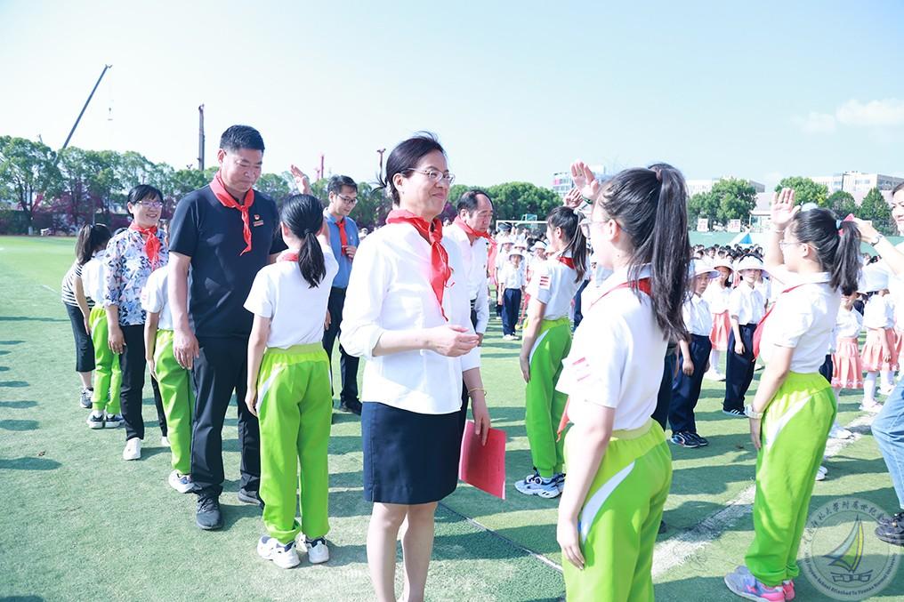 活动最后由少先队总辅导员杨绘春老师带领一年级新队员呼号。伴随着鼓号队奏响少先队退旗曲,整个入队仪式也落下了帷幕。