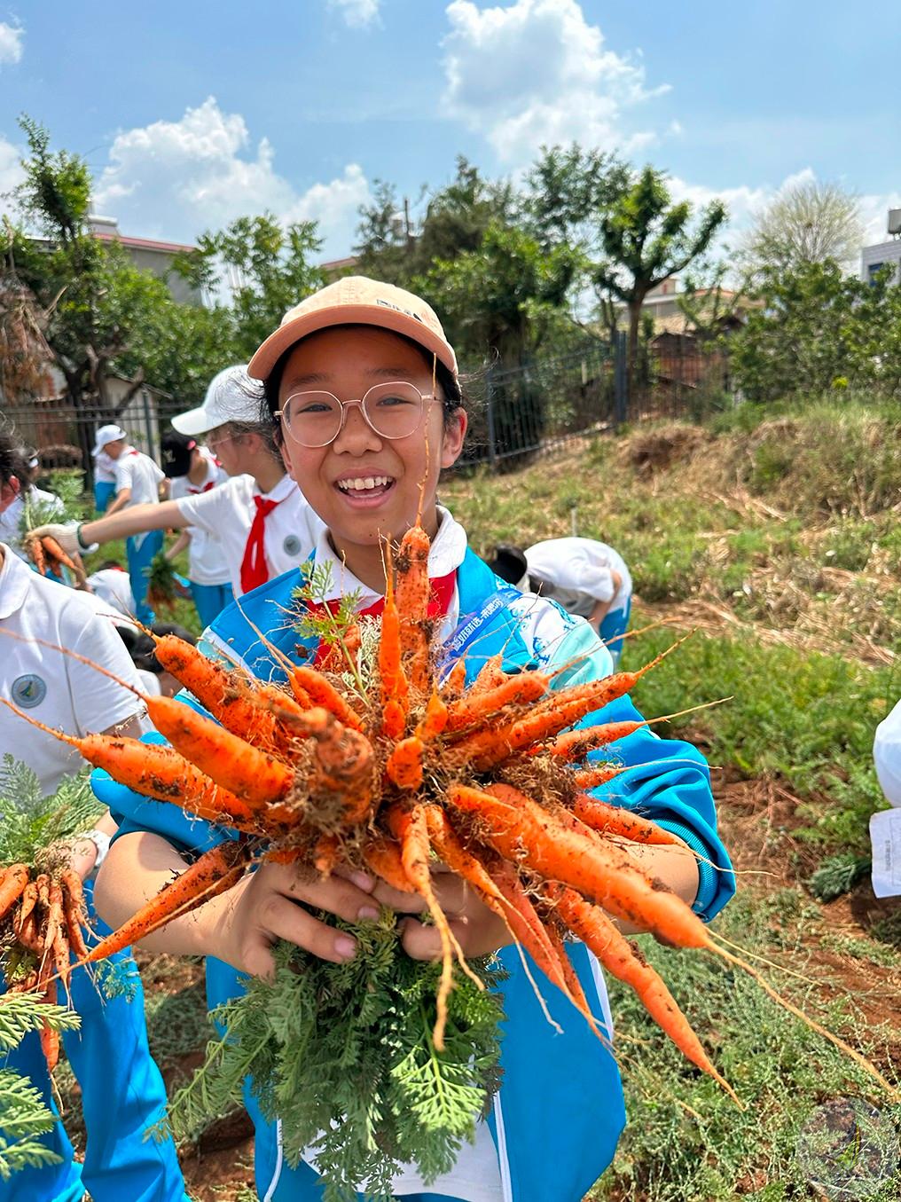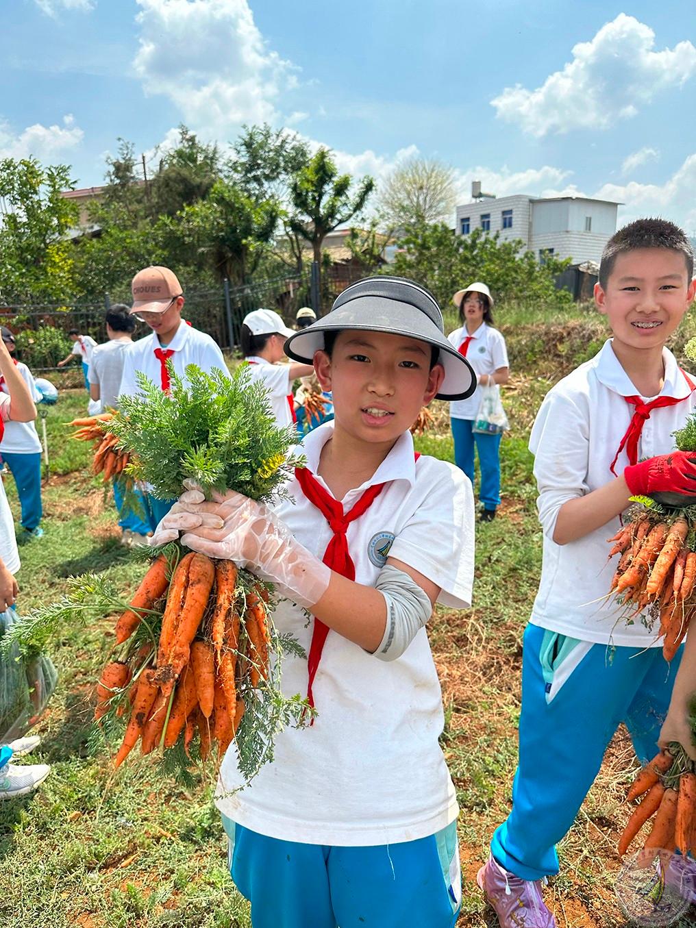 挖完土豆,大家提着自己的劳动成果,转战胡萝卜地“看,我的萝卜!”孩子们纷纷举着手里粗细不一的萝卜比较着;再洗一根啃着走,味道沁人心脾!