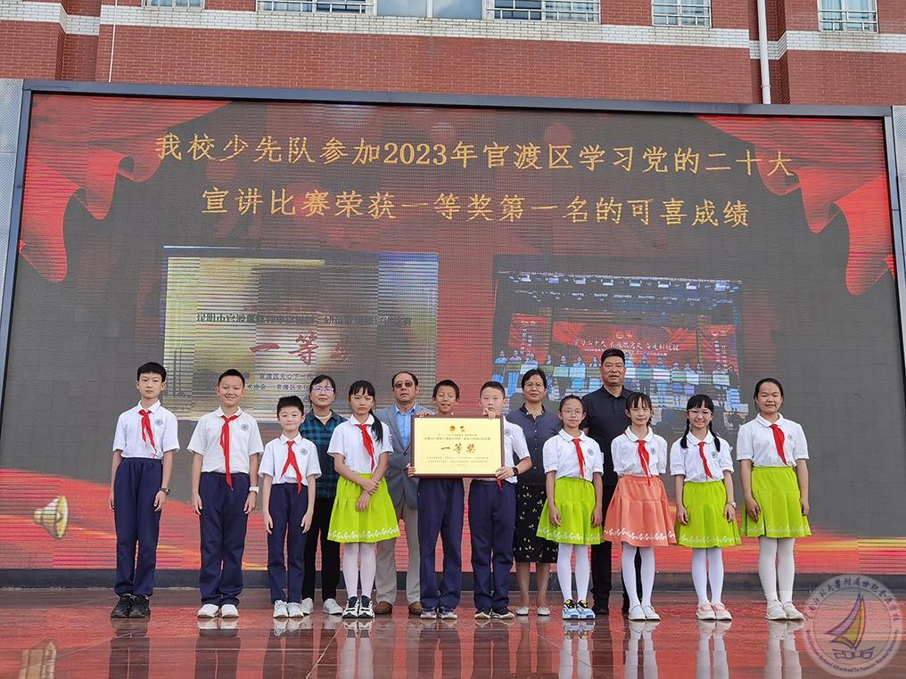 为深入学习贯彻党的二十大精神,把全区少先队员、团员的思想和行动统一到党的二十大精神上来,聚焦培养共产主义接班人,聚焦传承红色基因,教育引领少先队员、共青团员们听党话、跟党走,怀抱梦想又脚踏实地,成长为担当民族复兴大任的时代新人。2023年6月,官渡区少工委特举办“学习二十大 永远跟党走 奋进新征程”和“打造'六个春城'我们在行动”两大主题的党的理论知识宣讲比赛。
