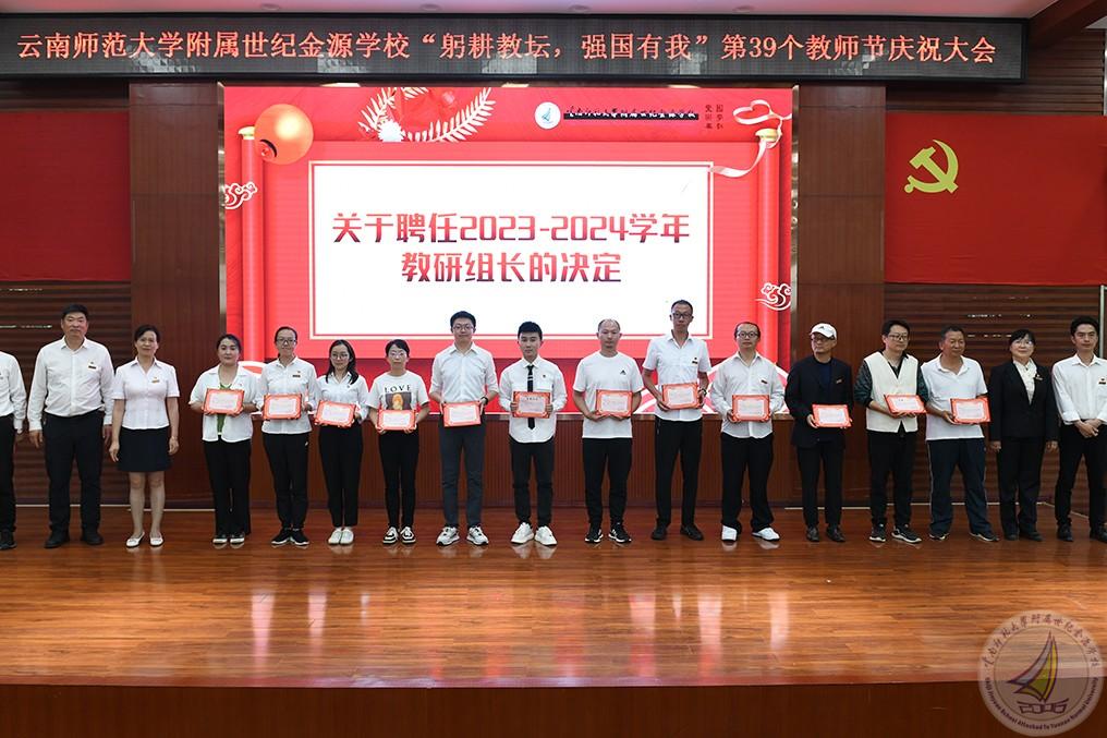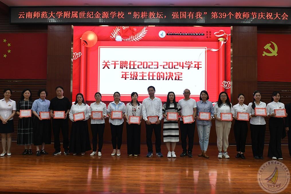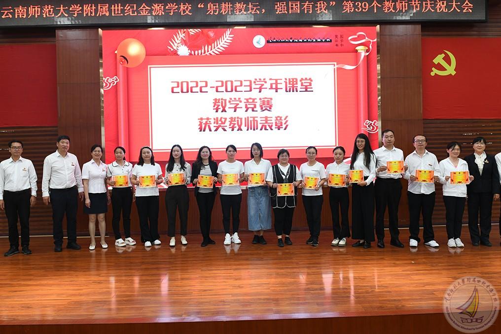 在第39个教师节来临之际,云南师范大学附属世纪金源学校举行“为教师亮灯”、主题升旗仪式、主题班会、主题黑板报等一系列庆祝活动,隆重庆祝教师的节日。2023年9月8日下午,学校在报告厅召开了“躬耕教坛,强国有我”第39个教师节庆祝大会,把教师节庆祝活动推向高潮。大会由许全友副书记主持。