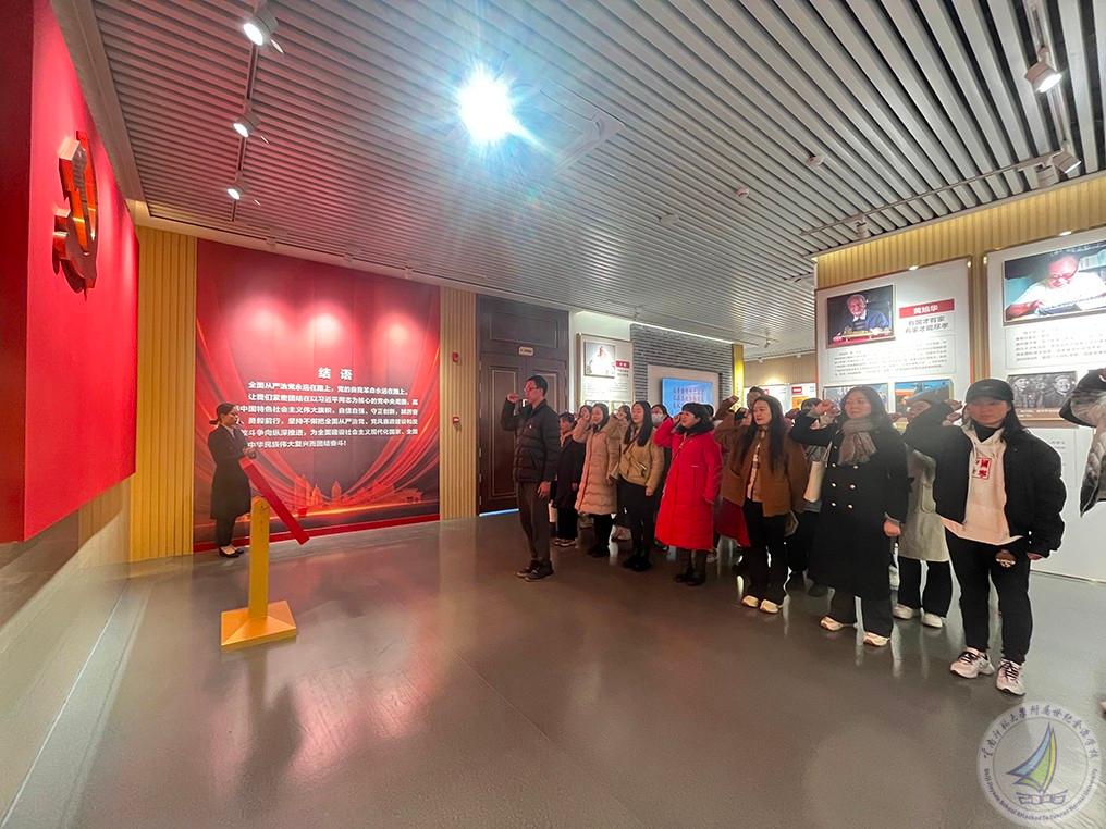 参观结束后,在支部书记欧阳明同志的带领下,全体党员面向党旗重温入党誓词。