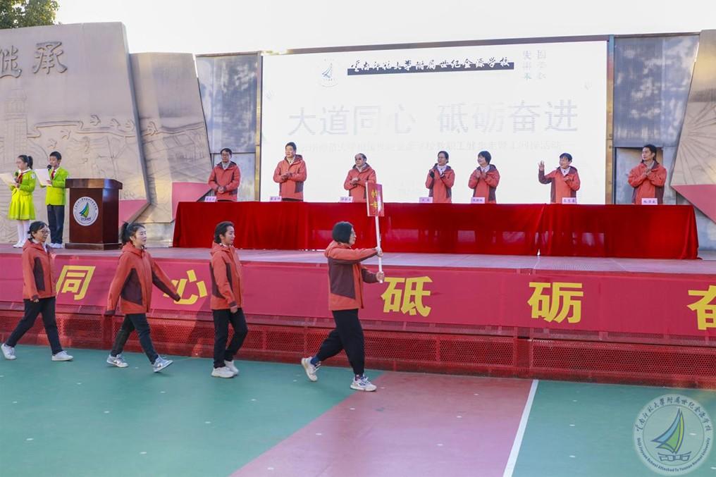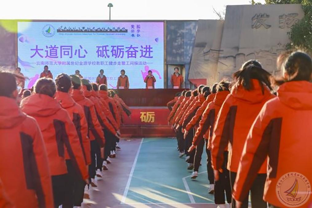 1月6日,站在2024年开篇的曙光中,云南师范大学附属世纪金源学校“大道同心 砥砺奋进”第一届健步走活动暨教职工工间操比赛在万众期待中拉开帷幕。本次活动由学校工会组织,以同心向远而行、向新而行、向强而行的旋律奏响奋进乐章,用新年盎然之景振奋人心。