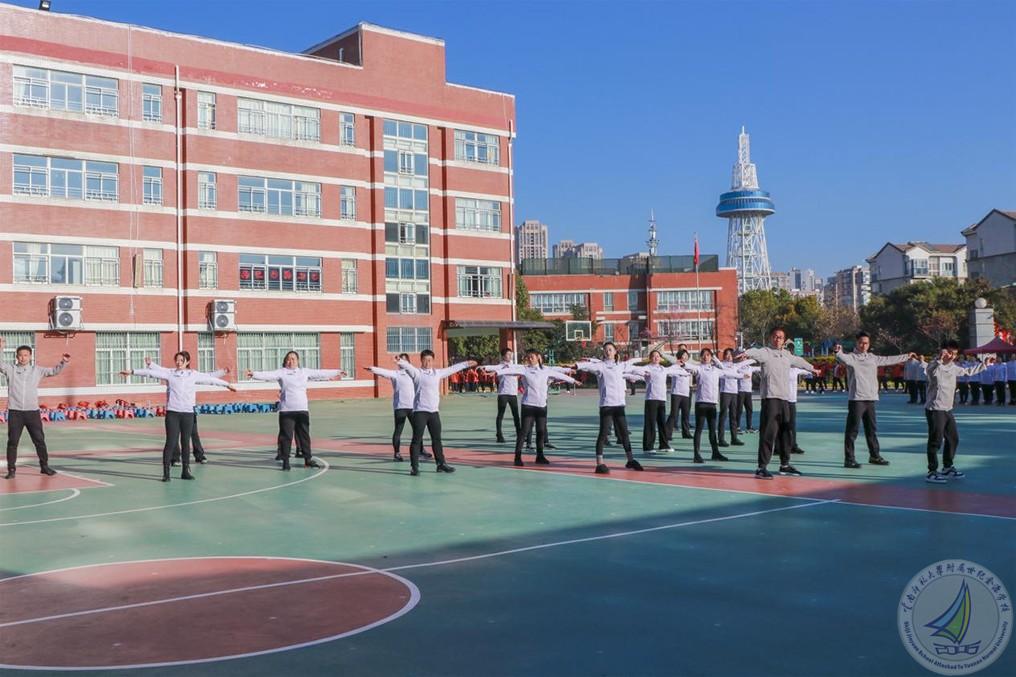 意气风发、精神抖擞——这是附属世纪金源学校教职工们在课间操比赛中展现出的集体风貌,随着《第九套广播体操》的音乐响起,教职工们踏着节拍,伸展、扩胸、踢腿、体转、跳跃.....用规范而有力的动作、飒爽的英姿展现着附属世纪金源学校教师新时代精神风采。充满朝气的动作寓意着学校斗志昂扬、勇创佳绩的教育梦想!梦想不老,青春永在!