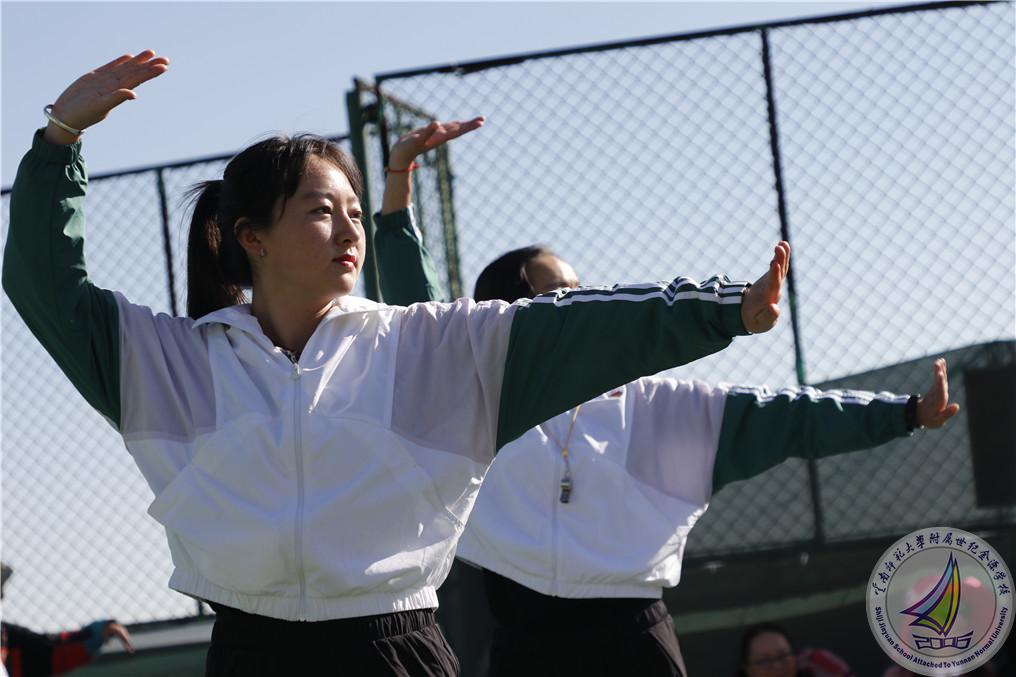 在比赛中领操的老师更是英姿飒爽,活力无限,充分展现了我园教师的良好精神风貌。
