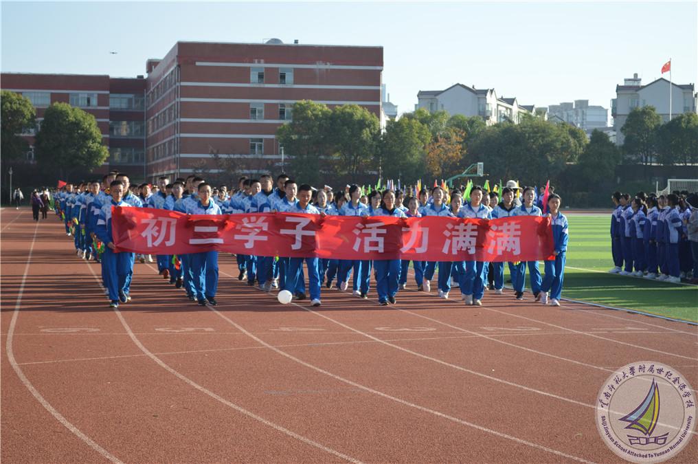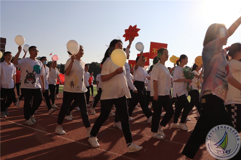 最后,是初三年级方阵,他们自信的喊出“问金源大地,谁主沉浮?”且看初三年级激发活力,放飞梦想,他们整齐的步伐象征着他们团结进取的精神;勃发的英姿正如她们努力拼搏、斗志昂扬的学习状态;响亮有力的口号昭示着他们决战中考、蝉联官渡区冠军的信心。