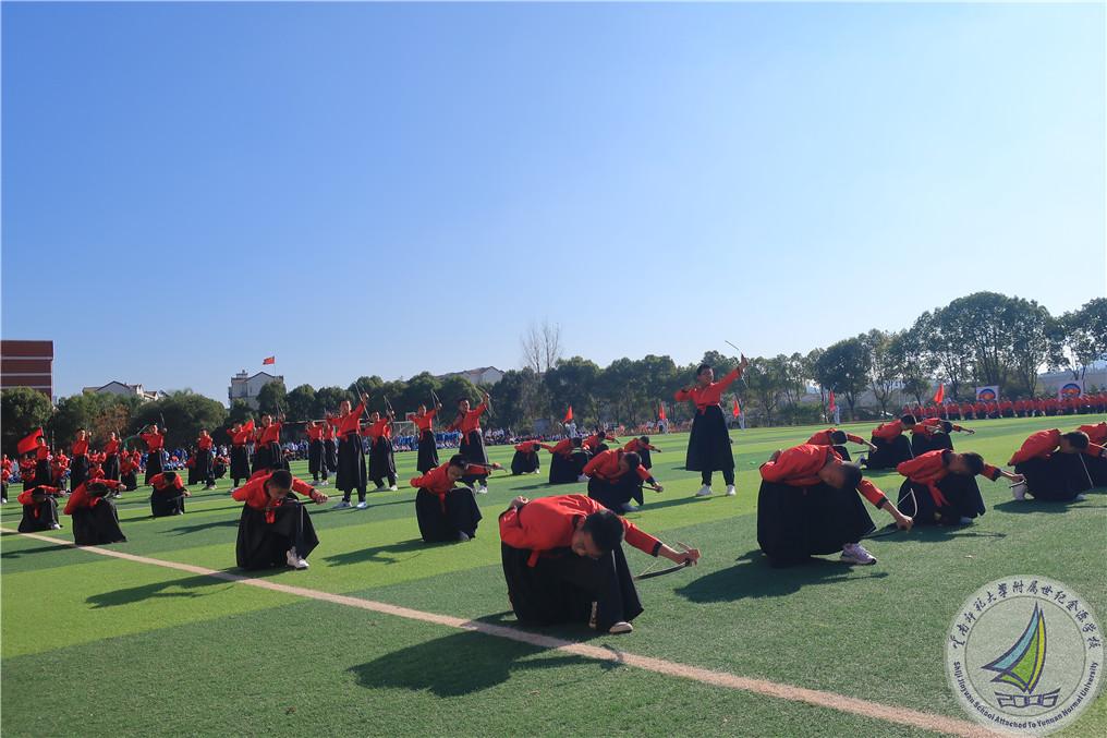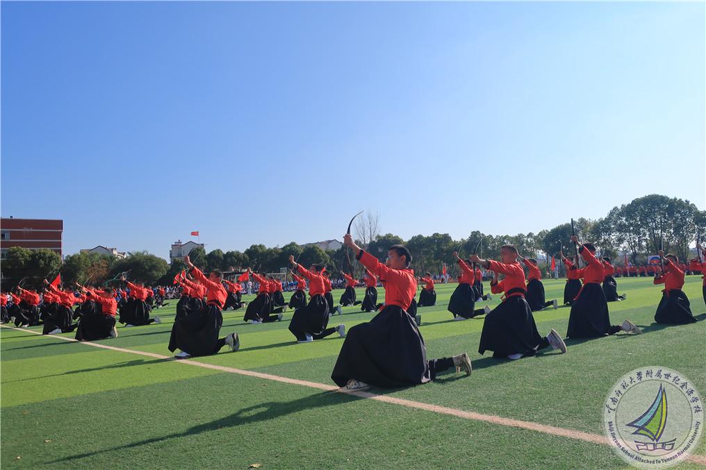 接下来,是初中部献给我校体育节精彩的团体节目《射礼》。射礼是贯穿我国数千年历史的重要礼仪,被明确记载于儒家经典仪礼之中,是中华民族宝贵的文化遗产。从先秦时期到宋明时期,射礼尤其在民间的乡舍里一直延续,生生不息。《礼记.射義》记载:“故男子生,桑弧蓬矢六,以射天地四方,天地四方者,男子之所有事也,故必先有志于其所有事。”