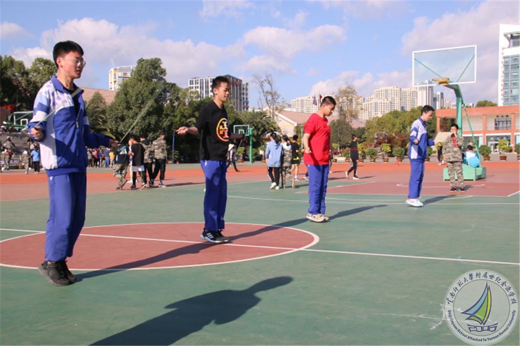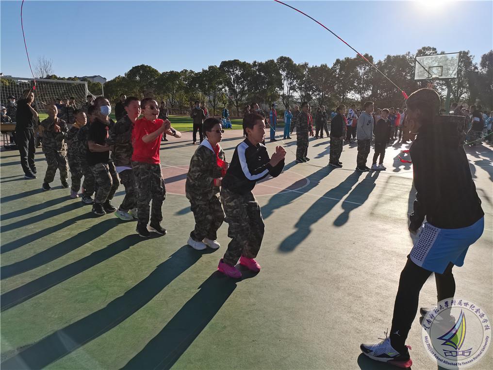 三分钟集体跳绳考验集体配合、技巧技能、体力耐力,随着哨声响起,时间快速流逝,“预备,走”,八双脚跟着绳子的节奏一下下有序跳跃,大家齐呼“跳、跳、跳......”这种节奏给予每个人力量....