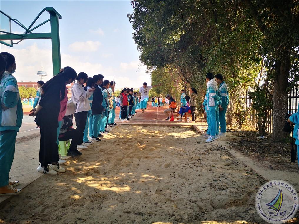 在各项比赛中,听到最多的声音还有令人紧张兴奋的哨声,裁判员顶着烈日,秉持公平公正的原则认真评判,校准登分,全心全意为运动会服务。很多比赛项目需要很多裁判协作完成,例如跳远,裁判是一个团队,他们 分工明确:“检录、记录、举旗、测量、平沙坑。”