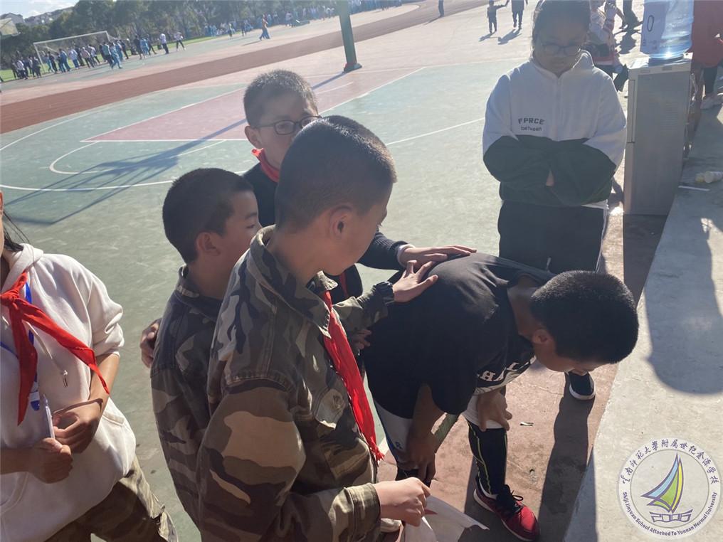 送上巧克力,递上矿泉水,捏捏胳膊、拍拍腿,遇见长跑结束的同学马上上前搀扶。他们默默无闻,他们悄悄奉献,他们就是我们运动会的幕后英雄——班级后援团。一句句加油、一声声鼓励增强了运动员的斗志、温暖了运动员的心扉。