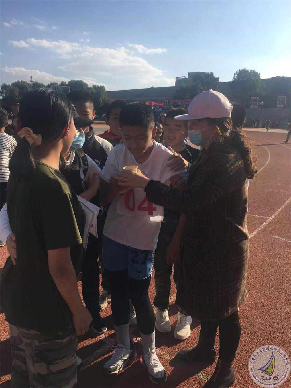 赛道上,运动健儿们个个雄姿英发,大显身手,奋力拼搏。啦啦队在赛场旁呐喊助威,而有那么一群人却在人们的视线之外默默地为大家付出,他们就是为运动员们做好后勤保障的同学。