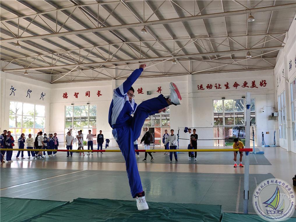 11月24日,循着耳边响起的此起彼伏的掌声、欢呼声、加油声望去,风雨操场内的跳高场地同样精彩。赛场上裁判员庄严宣读着选手姓名,选手们依次助跑,腾跃,过杆,在欢呼声中一次又一次挑战着自己的极限。