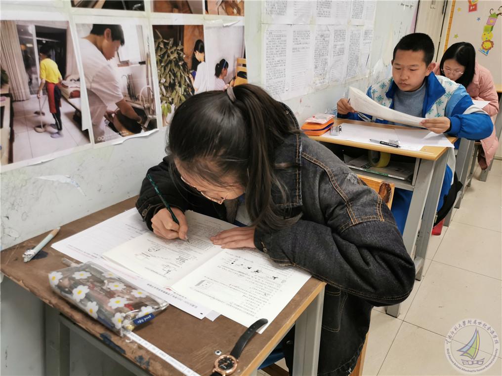 在这里,没有监考老师的巡视,只有笔尖在试卷上“沙沙”的书写声;在这里,没有左顾右盼的眼神,只有同学们聚精会神埋头答卷的身影。