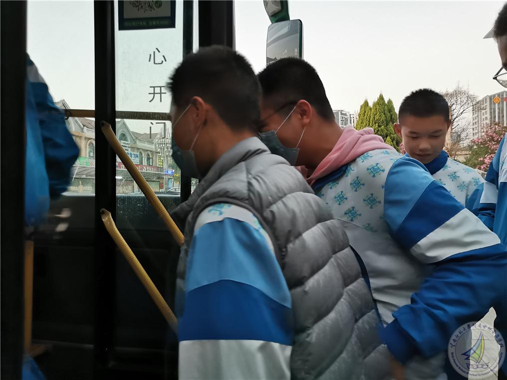 上午7:10分初三8个班学生有序乘座公交车前往官渡区人民医院。