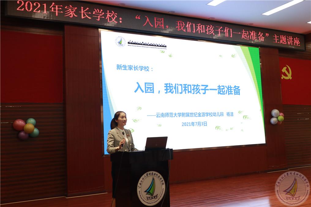 为了加强家园合作,帮助家长形成正确的教育观念,促进幼儿更好更快适应幼儿园的生活。2021年7月3日上午,云南师范大学附属世纪金源学校幼儿园在学校报告厅组织开展“小班新生家长培训学校”专题培训。培训由小班年级组长王启娟老师主持,渠志春副校长出席了会议,杨洁园长主讲,王云丽副主任、小班年级全体教师参加培训。