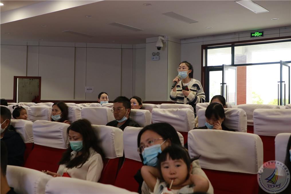 杨洁园长的培训深入浅出,与家长积极互动,营造了良好的沟通氛围。杨园长首先介绍了我校雄厚的师资力量、良好的教学环境;其次从幼儿园的学习特点、课程设置、教育理念等方面进行细致入微讲解,帮助家长了解幼儿园的教育教学目标及相关注意事项。