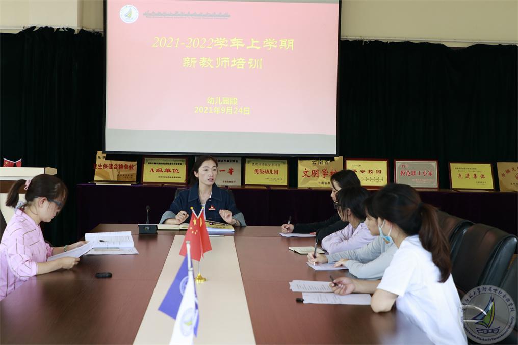 为了加强我园新入职教师职业道德修养,增强事业心和责任感,完成教师角色的转变,尽快了解岗位工作职责、工作流程和要求。2021年9月24日下午,幼儿园组织新入职教师开展入职培训会,培训由幼儿园园长杨洁老师主持。