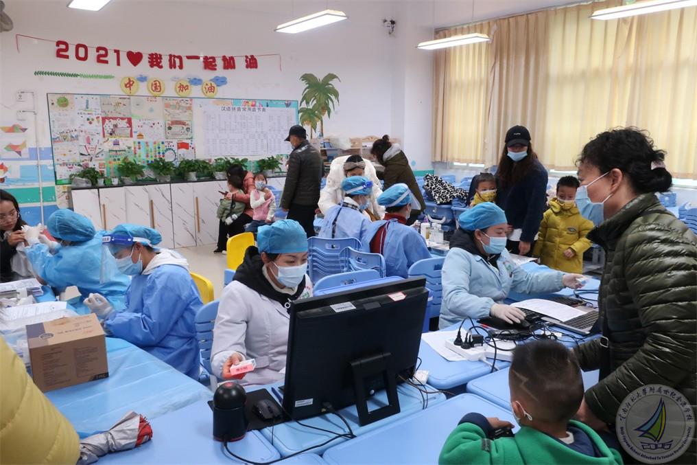 按照上级主管部门统一部署要求,云南师范大学附属世纪金源学校成立临时接种点,为3-6岁(小班、中班、大班)的幼儿提供第一针接种服务。为做好此次疫苗接种工作,学校制定工作方案进行了周密部署,幼儿园提前通过班级群及时向家长发放“云南省新型冠状病毒疫苗知情同意书”,做好疫苗接种的宣传准备工作。同时老师们对班级孩子的身体状况、接种情况进行充分细致了解和登记,同心共筑校园“防疫墙”。