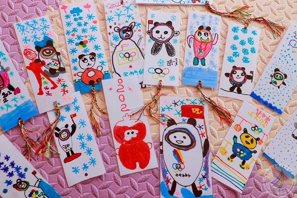 孩子们的想象天马行空,一双双巧手绘画出奖牌、奥运五环、国旗、吉祥物、奥运项目等作品,表达出孩子们对于冬奥的理解。