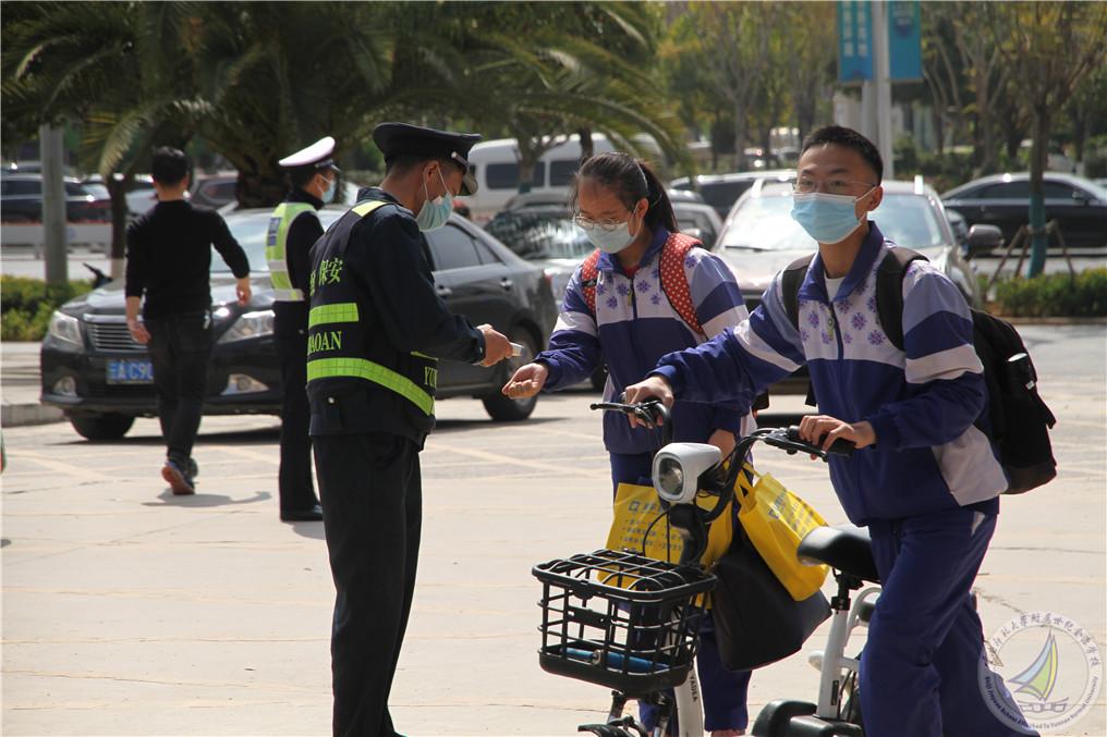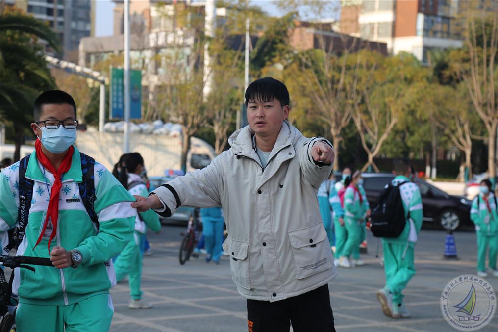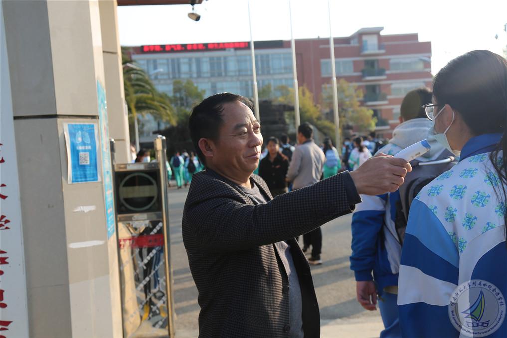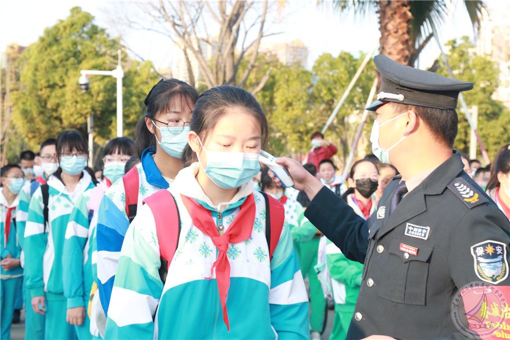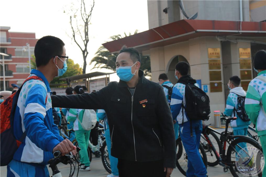 27日清晨,马永文书记、校长,许全友副书记,崔汝坤副校长,鲍学良副校长,学生发展中心蔡国平主任,中学段办肖勤主任,后勤保障中心李卓副主任、杨春盛副主任,中学段执勤老师们和安保人员,早早在门口等待,他们精神饱满,满怀希望地迎接同学们的到来,为同学们返校入学保驾护航。