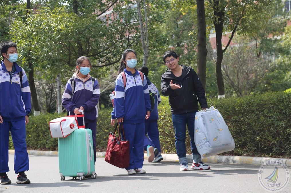 迎着清晨的曙光,同学们手提行李,在校门口进行消毒、测温、登记等相关程序,迈着归心似箭的步伐有序进入学校。校园内四处洋溢着喜庆的气息,同学们灿烂的笑脸给学校增添了别样的风景线。