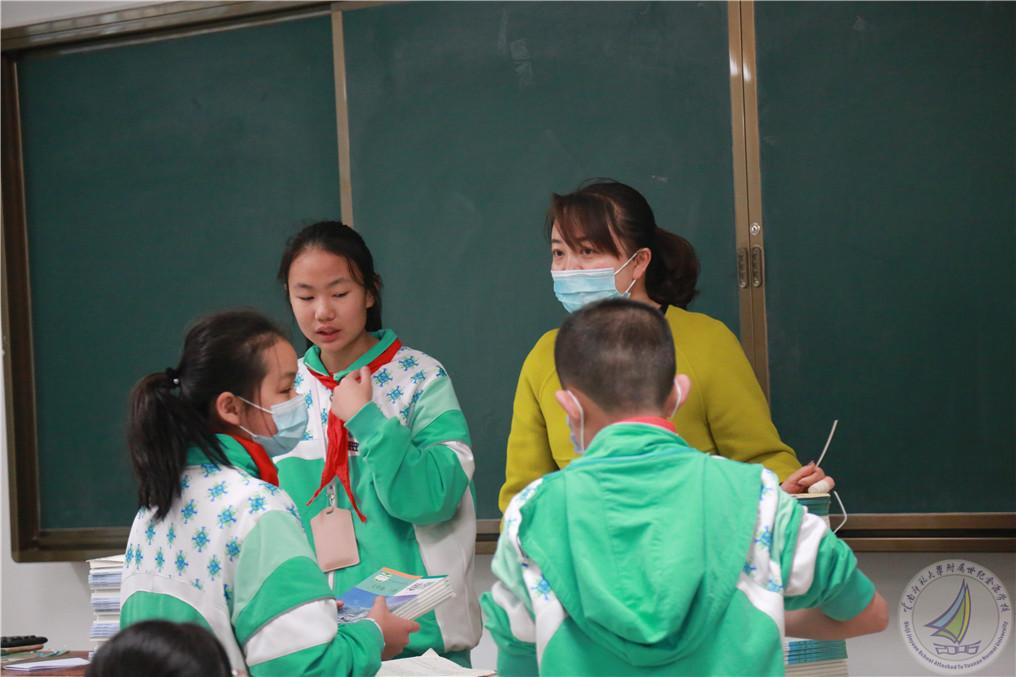 同学们摆放好行李后,各班主任用灿烂的笑容迎接同学们并到班发放新教材,拿到新书的孩子们特别开心。初一和初二的孩子们拿到书的新奇和喜悦洋溢在脸上,迫不及待地写上自己地名字,归属权属于自己啦!高中的孩子们回到班级立刻向老师提交健康绿码,小学段本次是电子报道注册,老师和家委们把课本放到每个孩子们的座位上,期待明天孩子们与新课本的新相识!
