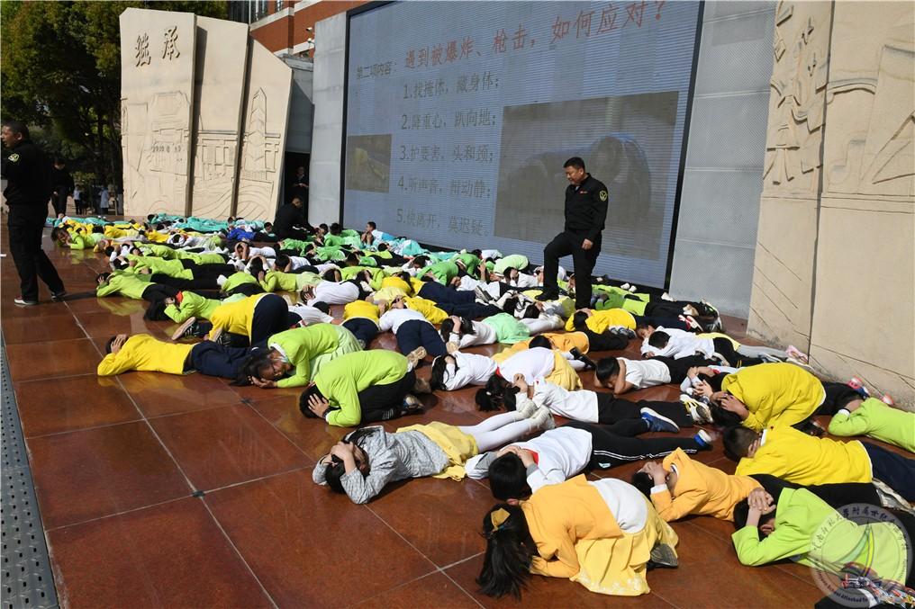接着渠志春副校长主持开展防暴恐演练、培训活动。昆明市公安局官渡分局党委委员、政工室王汝明主任,世纪城派出所教导员刘雪源,世纪城派出所学校法制副校长罗瑞海副所长,官渡区教育体育局安全科顾亦龙科长,官渡区进修学校书记、区教体局、安全管理干部基地主持人李巍书记,世纪城社区居委会书记、主任李蕊,世纪城物业公司李勇林主任,马永文书记、校长携全体校领导参加了本次活动。