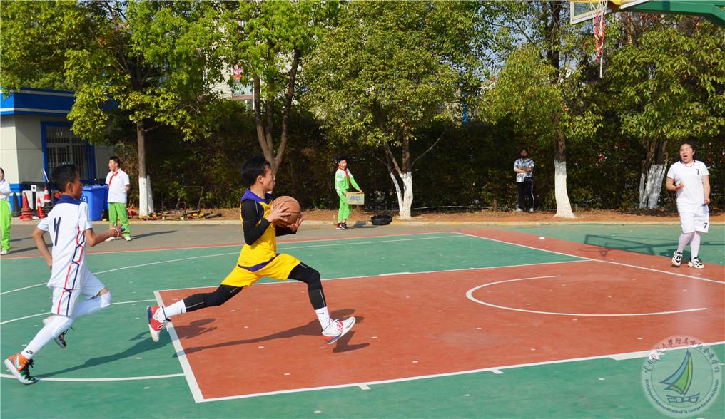 4月6日至4月16日是高段的篮球赛。一群群身着五彩球服的参赛队员、一群群举着各式加油标牌的啦啦队员、一群群热心、激动的老师和家委齐聚球场上,他们对冠军和荣誉的无线渴望,是给青春一份无憾的答卷。每当有人瞄准篮筐放手一投的时候,场边的呐喊声就响彻校园上空。球场上,时胜时负,紧张的氛围感染着所有人,未到最后一秒,一切皆为定数。