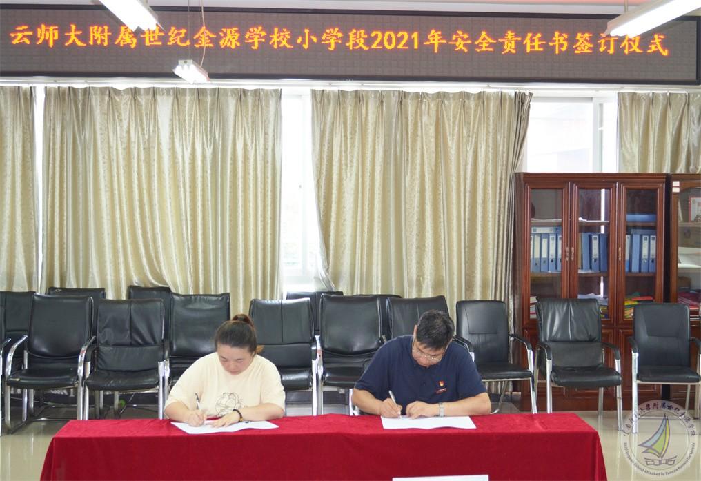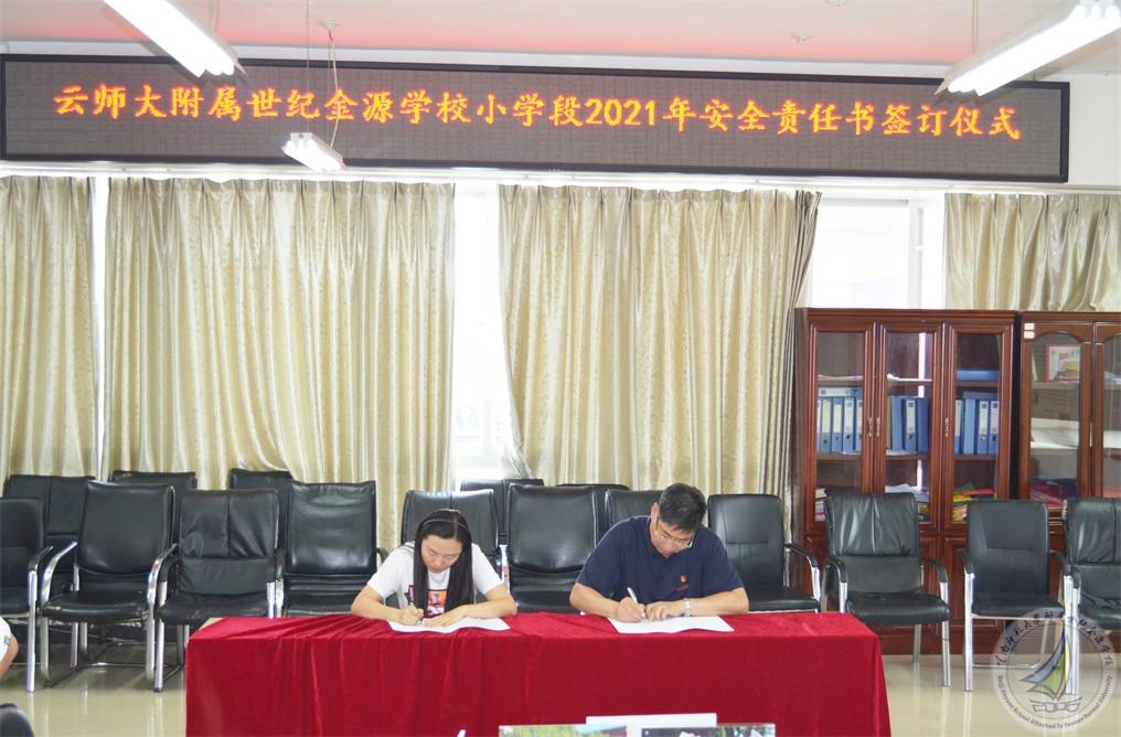新学期伊始,为不断强化校园安全管理,提高广大师生的安全意识和自我保护能力,预防和减少校园安全事件发生,根据学校安全工作的统一安排,建立校园安全管理网络体系,为校园安全筑起更加坚实的屏障。9月30日下午,小学段在小学二楼会议室举行了2021年《安全责任书》签订仪式。