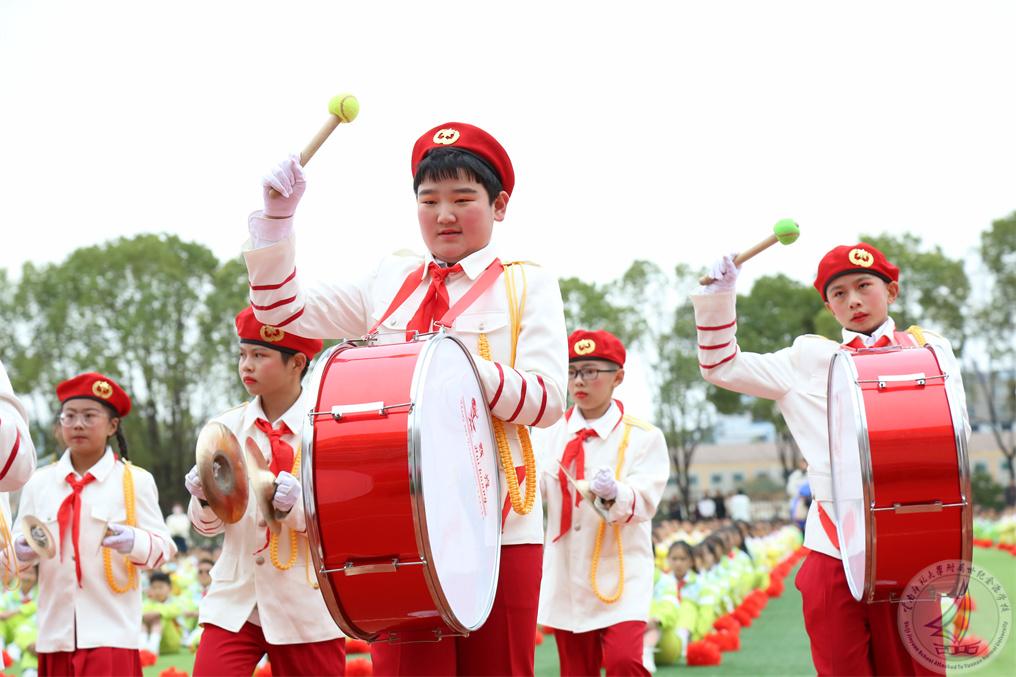 战场上的鼓号声振奋人心,鼓号队的少先队员们伴着铿锵有力的鼓点,昂首阔步进入运动场,红领巾们在新时代的鼓号声中,集结在星星火炬的旗帜下,立志争做锐意进取、蓬勃向上的新时代好队员。