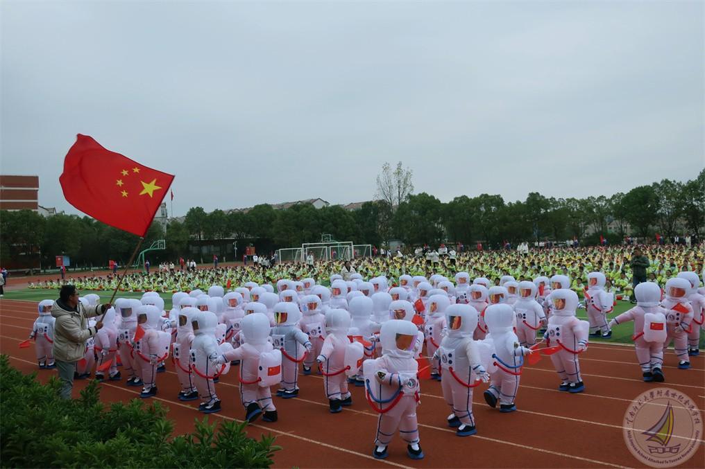 一年级这群可爱的小朋友第一次作为小学生参加运动会,他们的步伐稚气,但稚气中透着勇敢。小小宇航员,致敬中国航天梦,这才是祖国花朵们应追求的理想!为他们点赞!