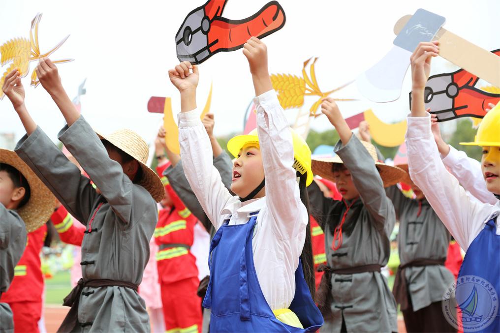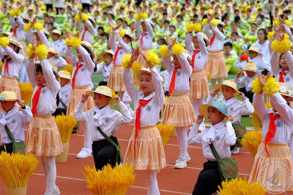 我们身边有各行各业的劳动者们,在他们的无私奉献、负重前行下,我们才能够享受这安好的岁月。五年级方阵致敬城市之光劳动者,三年级方阵以丰收的禾下之梦表达他们勤善之美,喜看稻菽千重浪,无数英雄下夕烟!