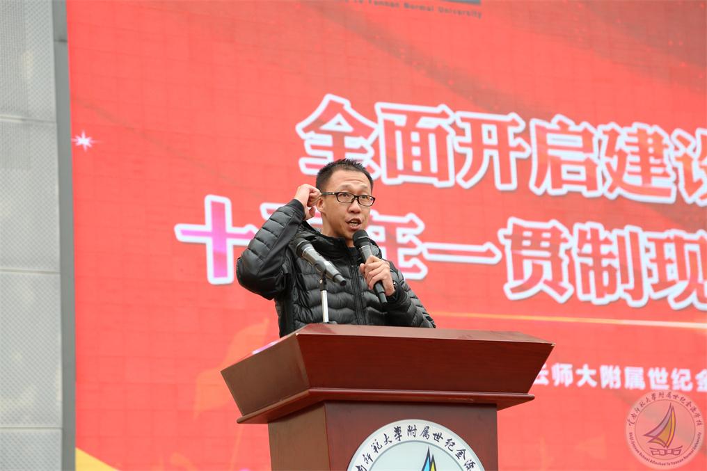 他说,欣逢盛世,“十五”这个数字背后有着深刻的寓意。COP15会议在昆明召开,我校作为十五年一贯制学校也迎来了自己的第十五个生日。三大“十五”齐聚一堂,必将打开世纪金源学校发展的新篇章。