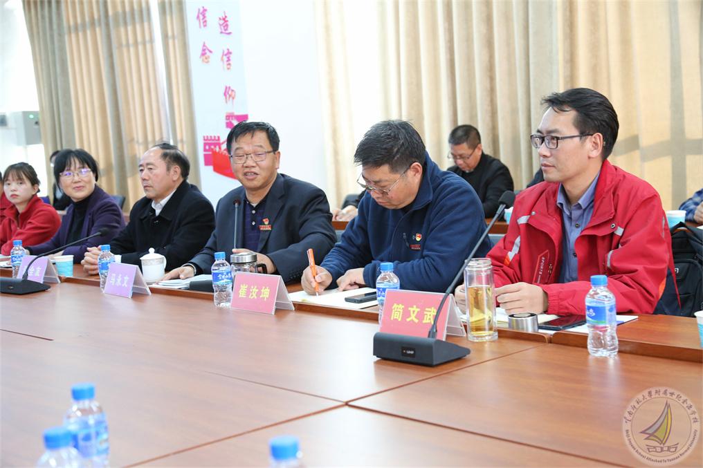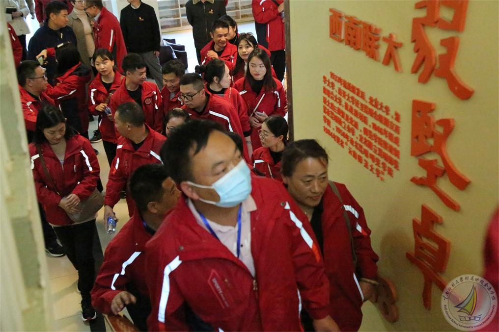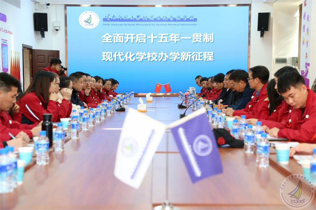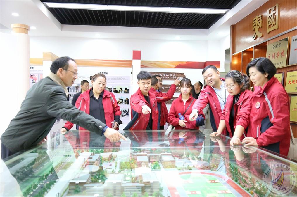 2021年11月11日下午,我校马永文书记、校长,许全友副书记,崔汝坤副校长,渠志春副校长,学生五大中心主任和副主任接待来自云南省“万名校长培训计划”第六期D113班,以我校简文武副校长为支部书记的临时党支部一行50多人的到访参观,其项目办公室综合部的彭波主任和沈修香老师一同随行参观。此行到访旨在了解我校十五年一贯制办学模式,以及“规范+特色”、“合格+特长”的办学目标与思想。